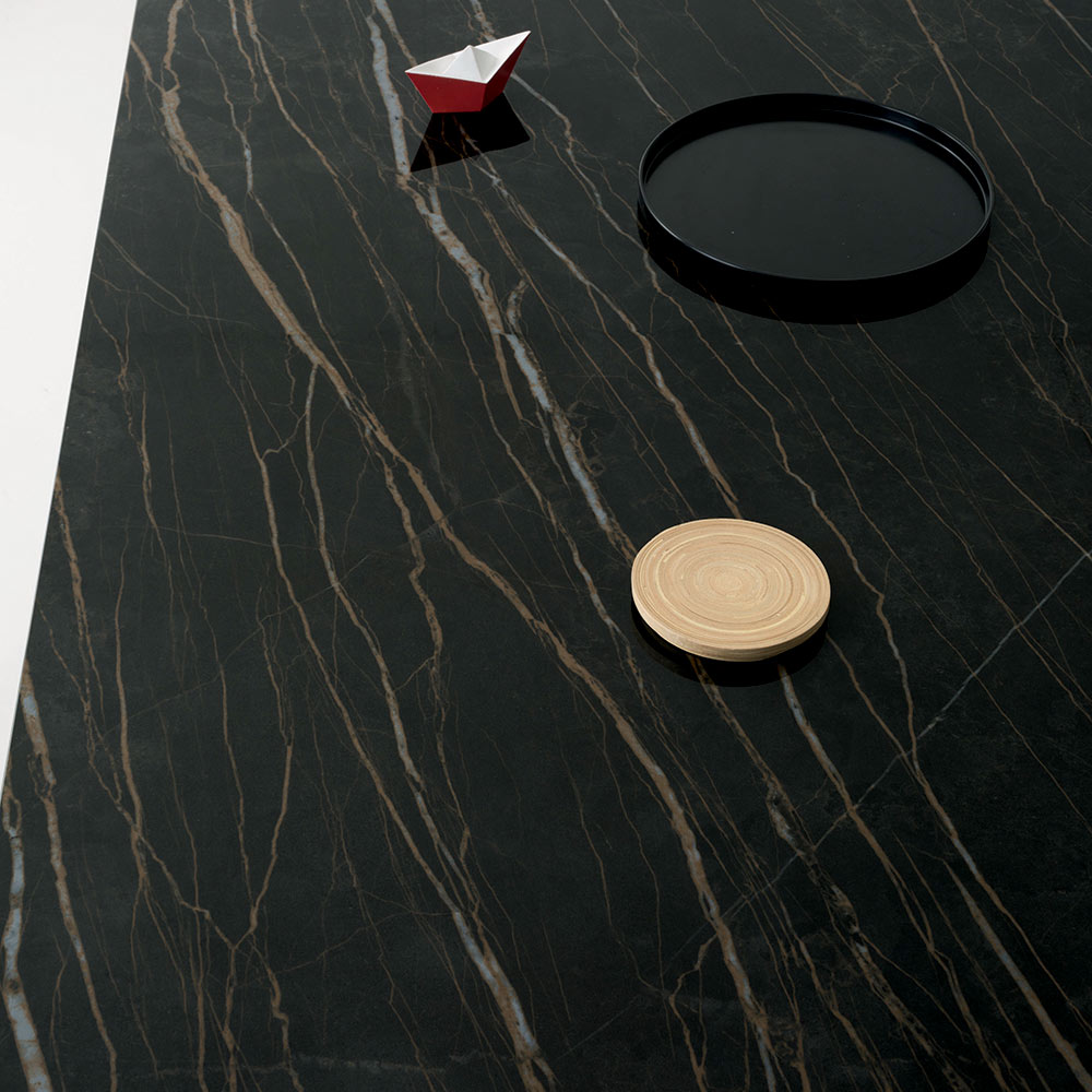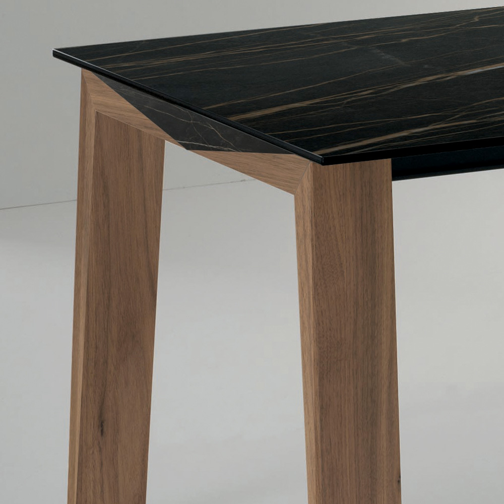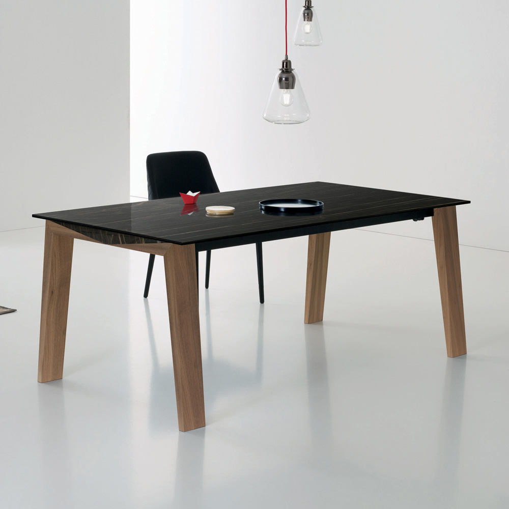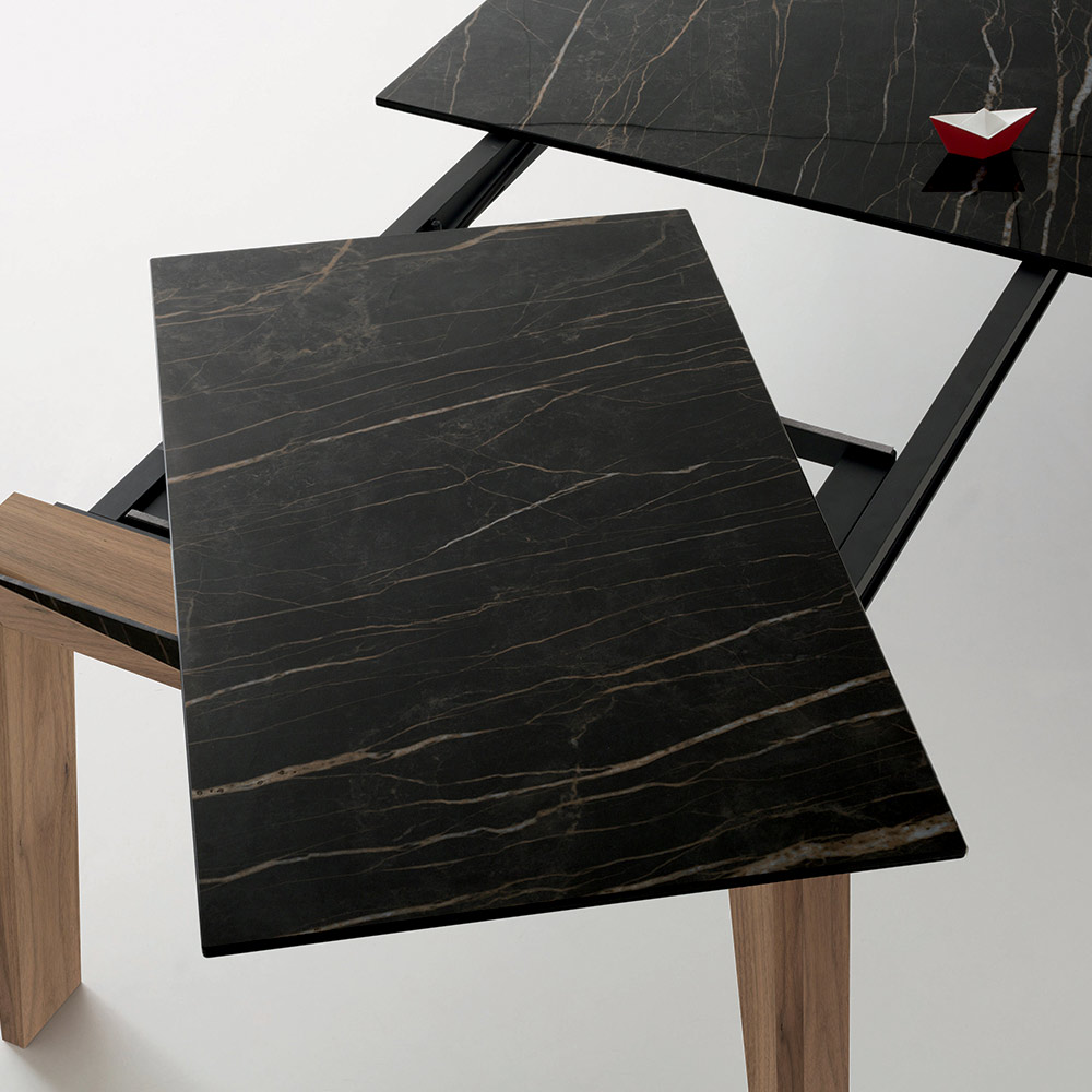 Rozkładany stół jadalny z litego drewna i błyszczącego ceramicznego blatu, wyprodukowany we Włoszech.
