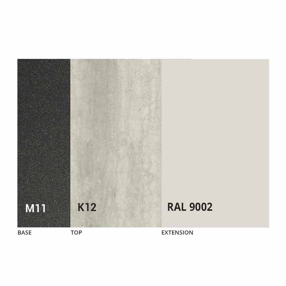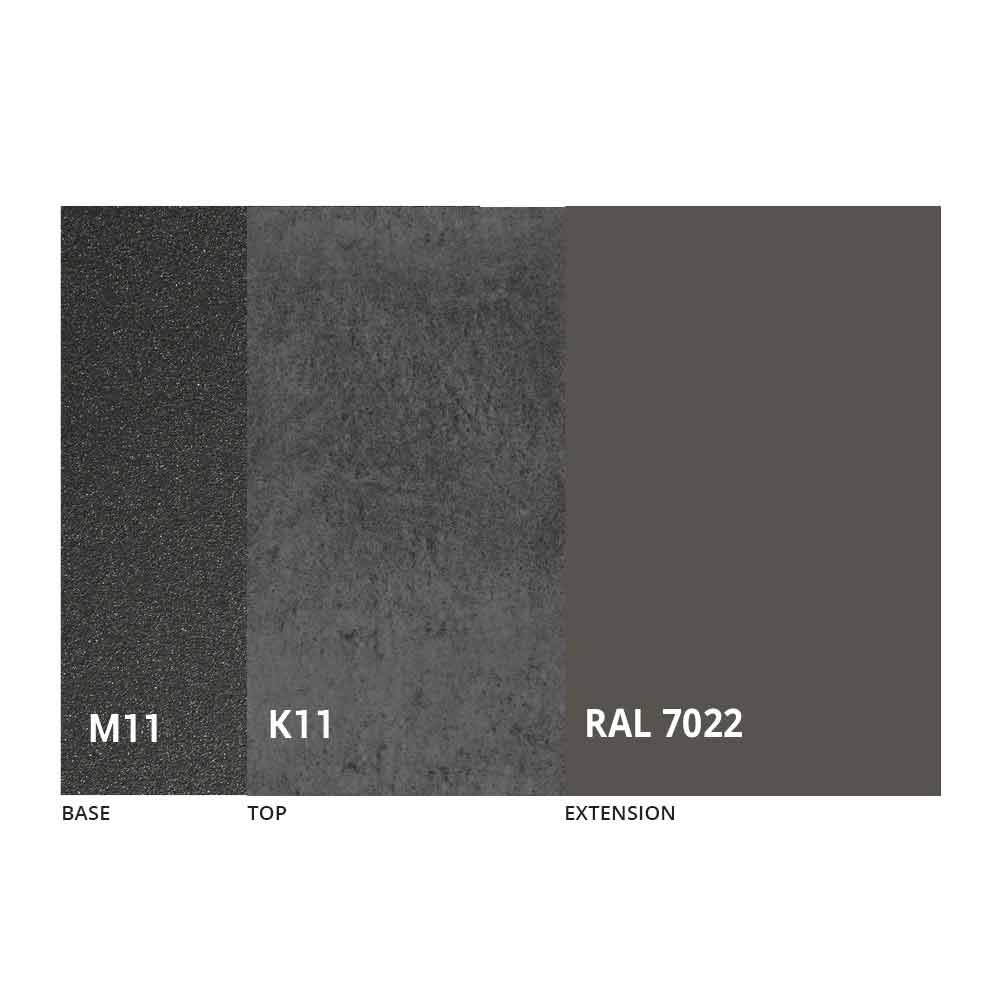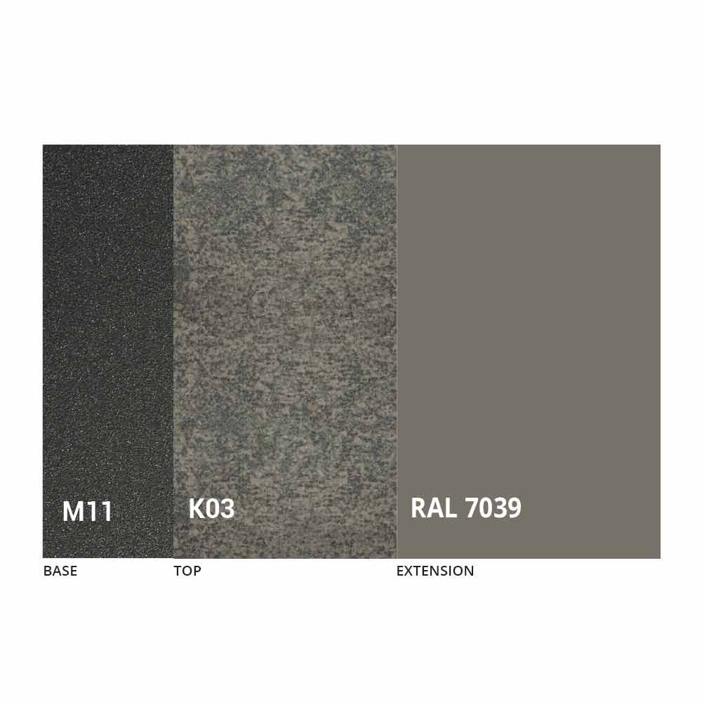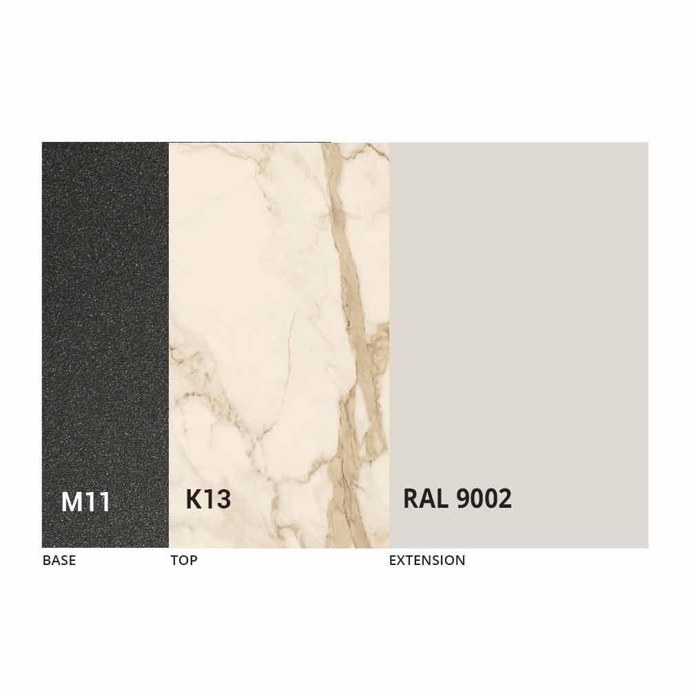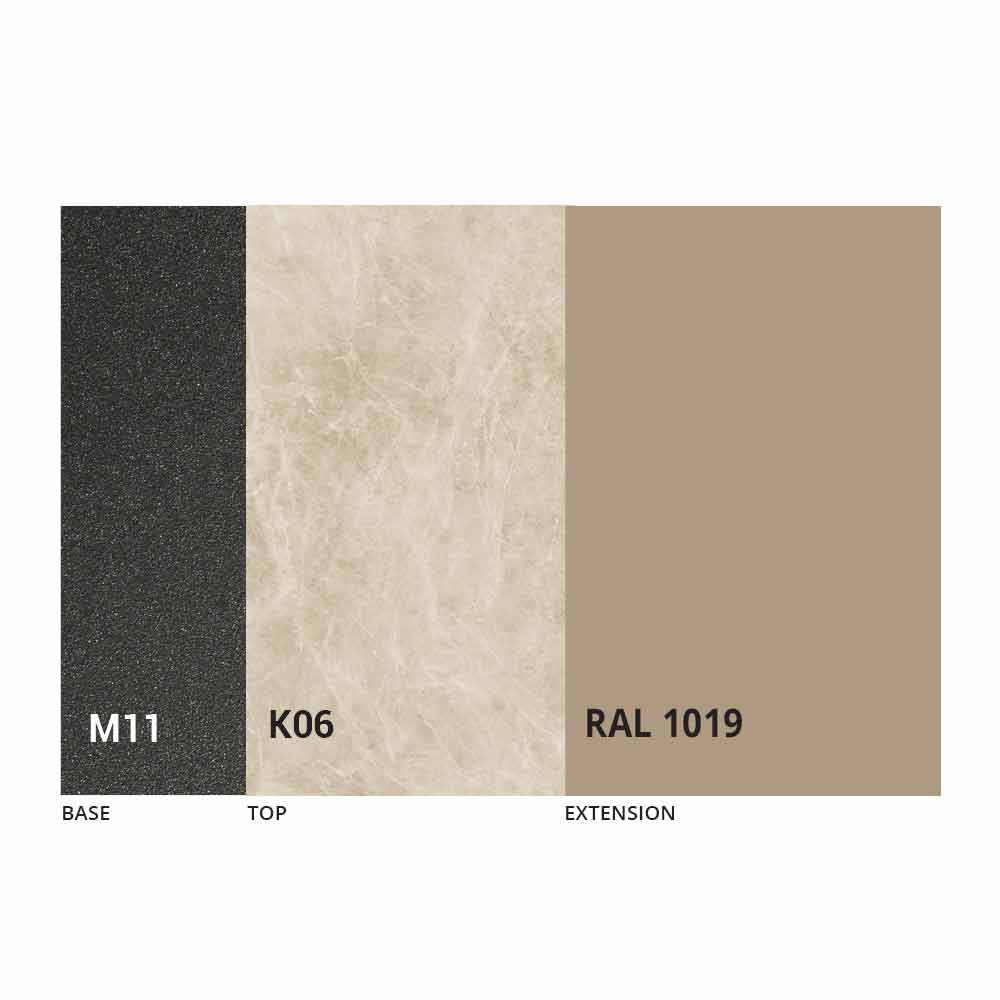 Blat i podstawę stołu można dostosować za pomocą różnych materiałów i próbnych wykończeń lub lakieru RAL. Aby uzyskać informacje, skontaktuj się z nami za pomocą odpowiedniego formularza „