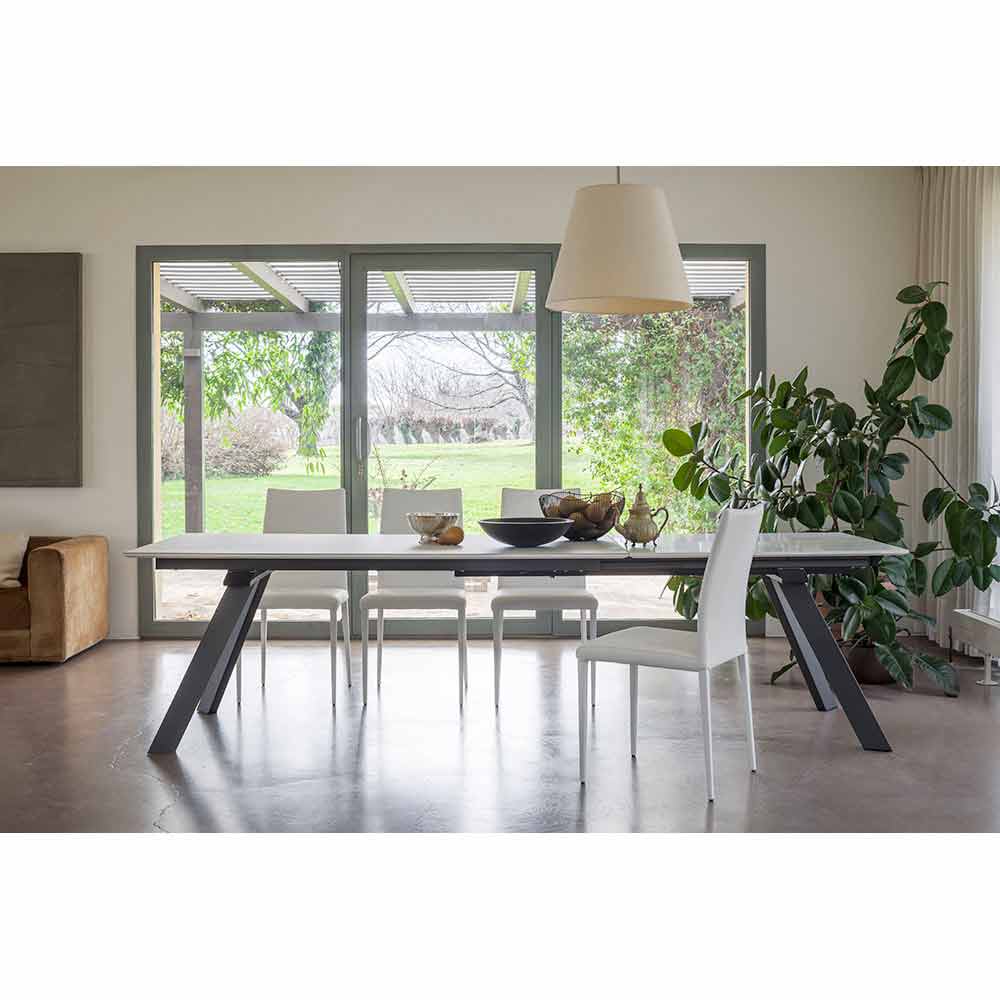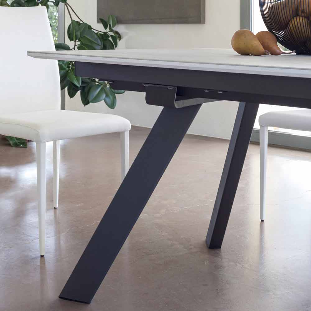 Rozkładany stół jadalny z ceramiczną i metalową podstawą wyprodukowany we Włoszech.