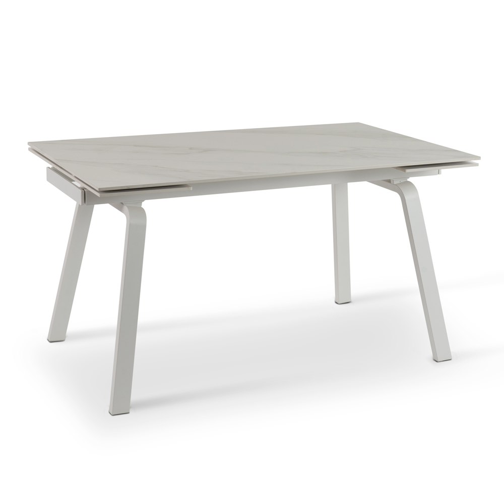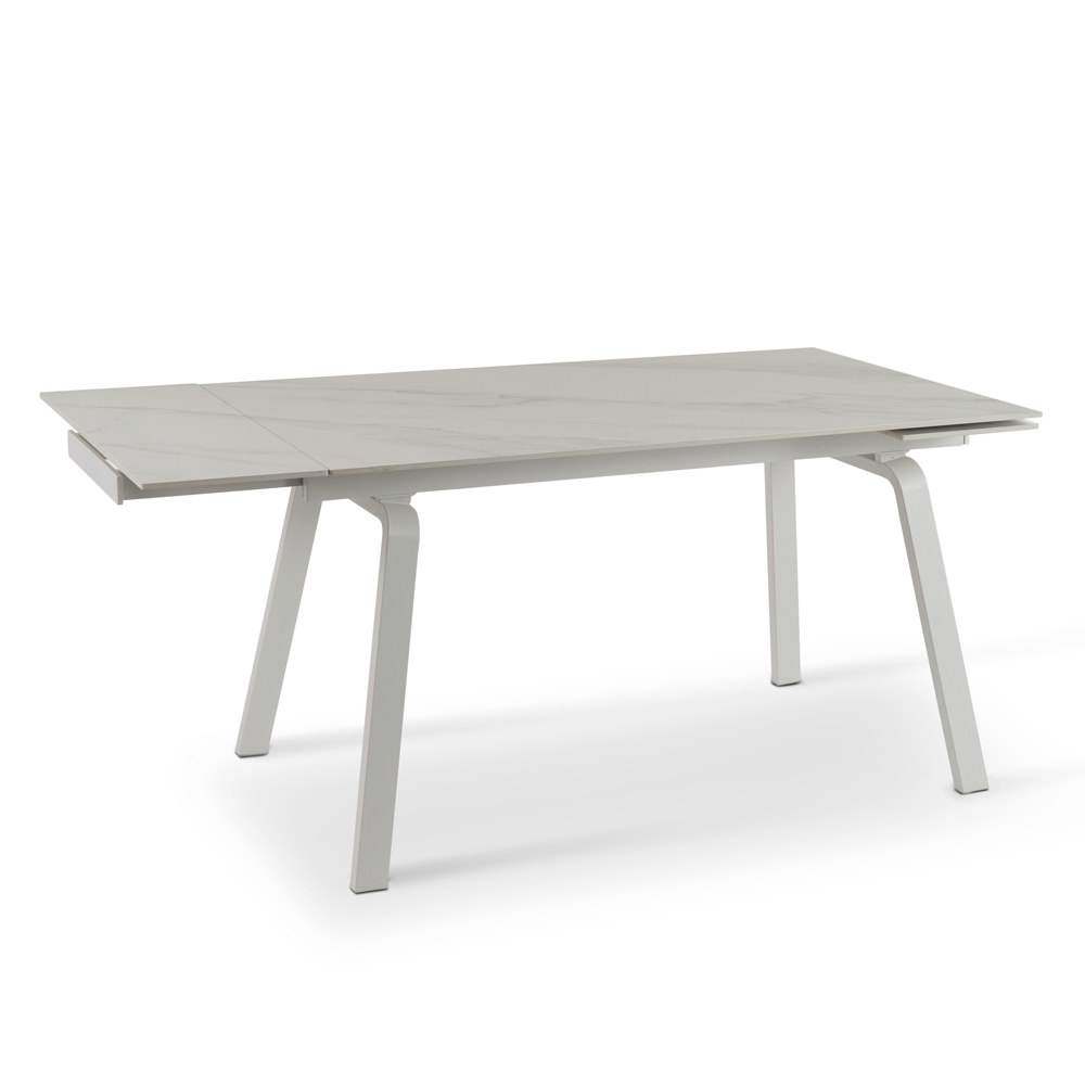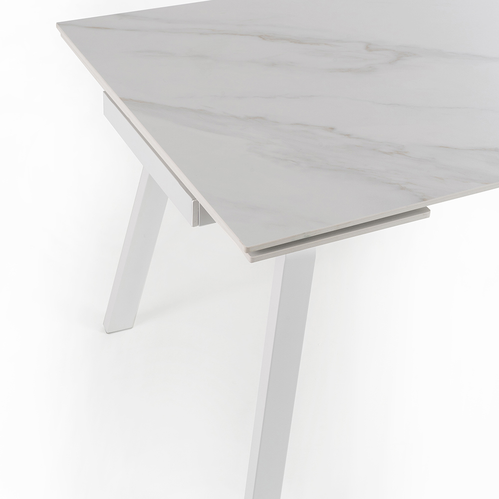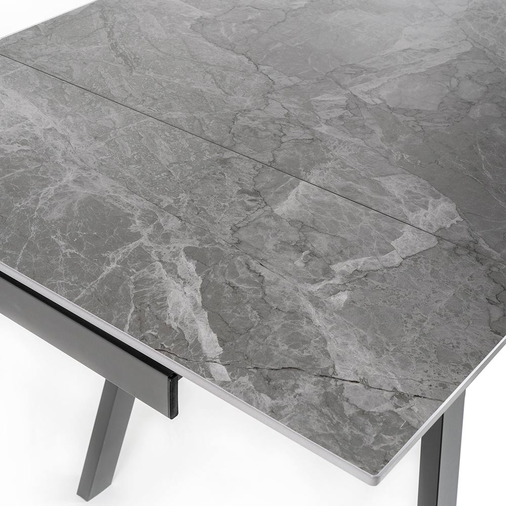 Rozkładany stół jadalny ze spiekanego kamienia z efektem marmuru i metalu