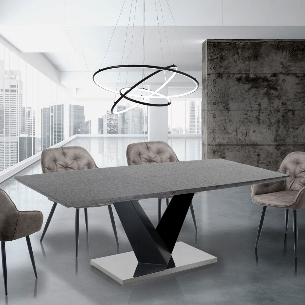 płyty MDF lakierowanej na czarno w kolorze matowym, wewnętrzne przedłużenie z płyty MDF pokrytej melaminą, wykończenie cementowe, grubość 4 cm, a podstawa w całości wykonana ze