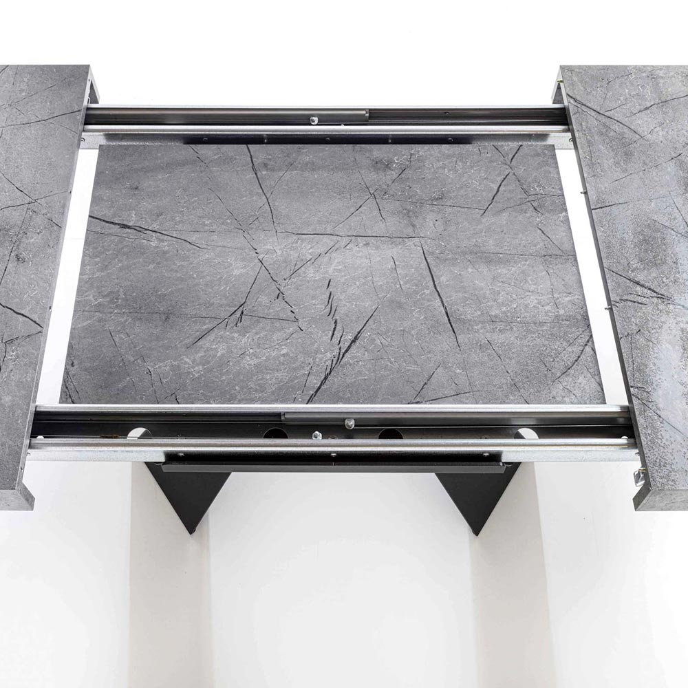 metalową podstawą pomalowaną na czarno. Ten wspaniały artykuł ma możliwość przedłużenia blatu do 170 cm do maksymalnie 220 cm, dzięki 2 przedłużeniom po 50 cm każde umieszczone pod blatem, które zapewniają niezwykle proste wyciąganie dzięki