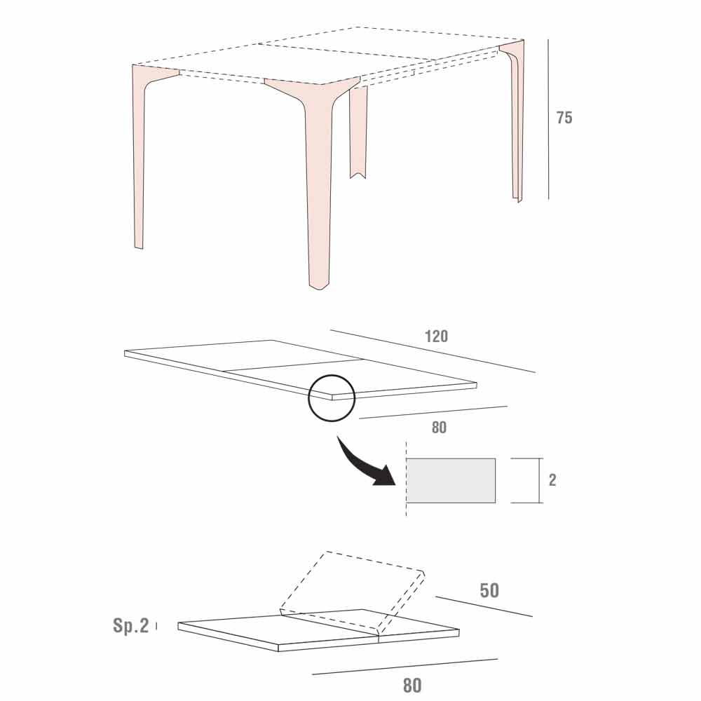 charakteryzujący się możliwością powiększenia powierzchni nośnej maksymalnie do 222 cm dzięki nadstawce w tym samym kolorze co blat, co pozwala na przyjęcie większej liczby gości podczas wspaniałych obiadów lub kolacji w towarzystwie, zwiększając tym samym jego