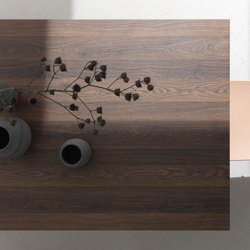 rozkładanym blatem z HPL, dostępnym w różnych wykończeniach i dwóch różnych rozmiarach. Jego estetyka skupia się całkowicie na