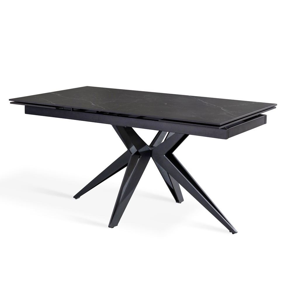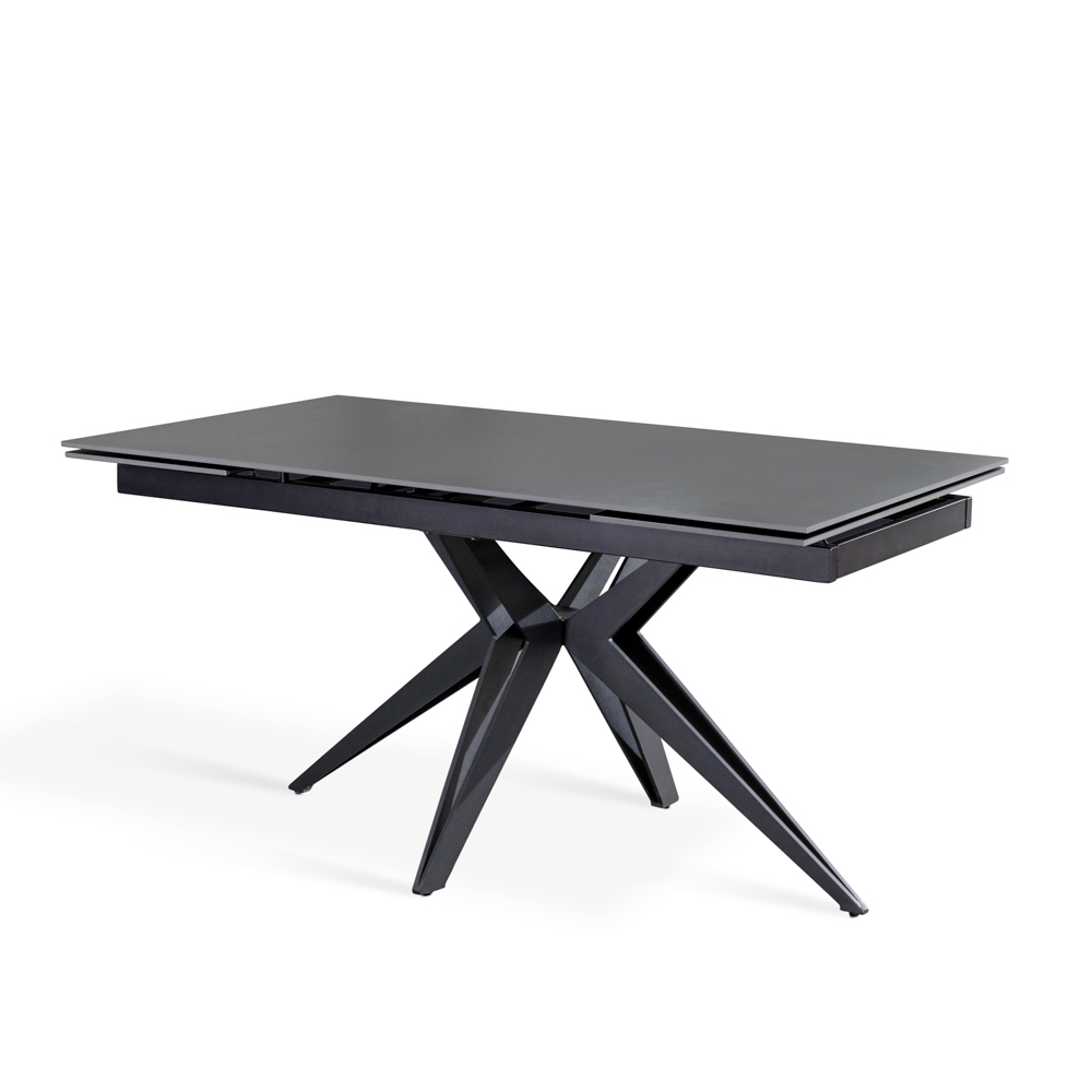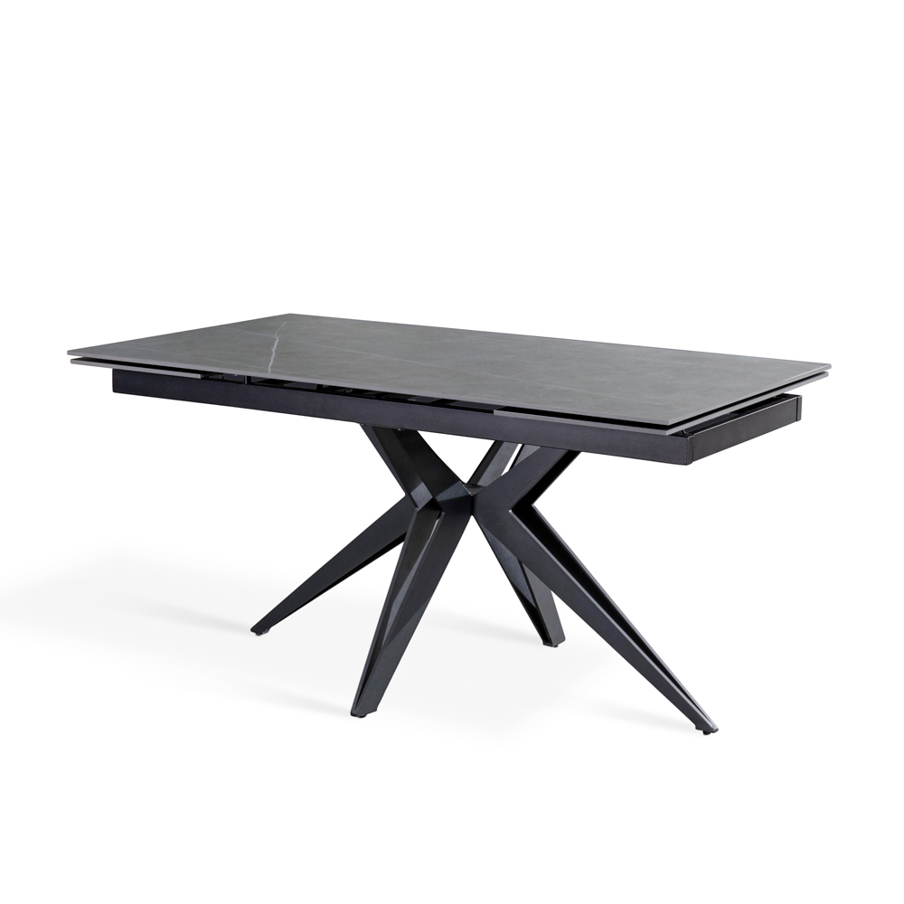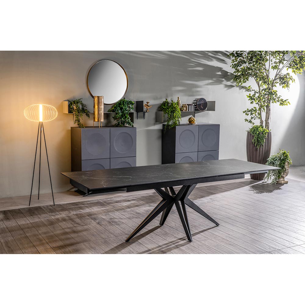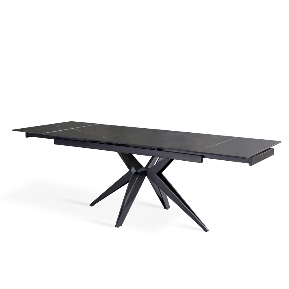 To, co przyciąga uwagę, to wyrazista siła tego rozkładanego stołu w stylu współczesnym i industrialnym. Jego konstrukcję charakteryzuje elegancki blat wykonany z ceramiki, który gustownie komponuje się z solidną metalową podstawą. Oferuje wiele możliwych kombinacji wykończeń prostokątnego blatu i wykończenia podstawy, zadowalając osobistą ekspresję i gust oraz odzwierciedlając ducha kontekstu, w którym jest umieszczony. Dzięki swojej możliwości rozbudowy może pomieścić aż 10 osób i staje się idealnym sprzymierzeńcem w tworzeniu wyjątkowych i ciepłych przestrzeni towarzyskich.