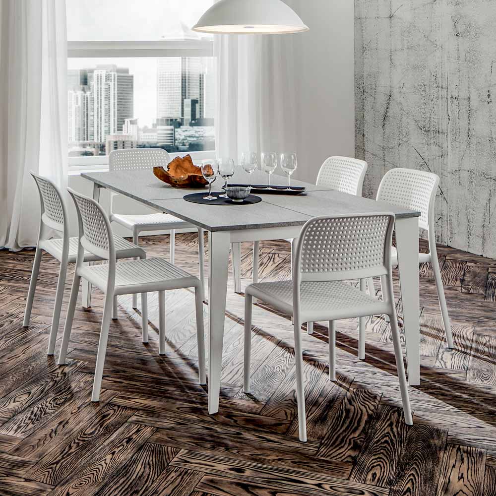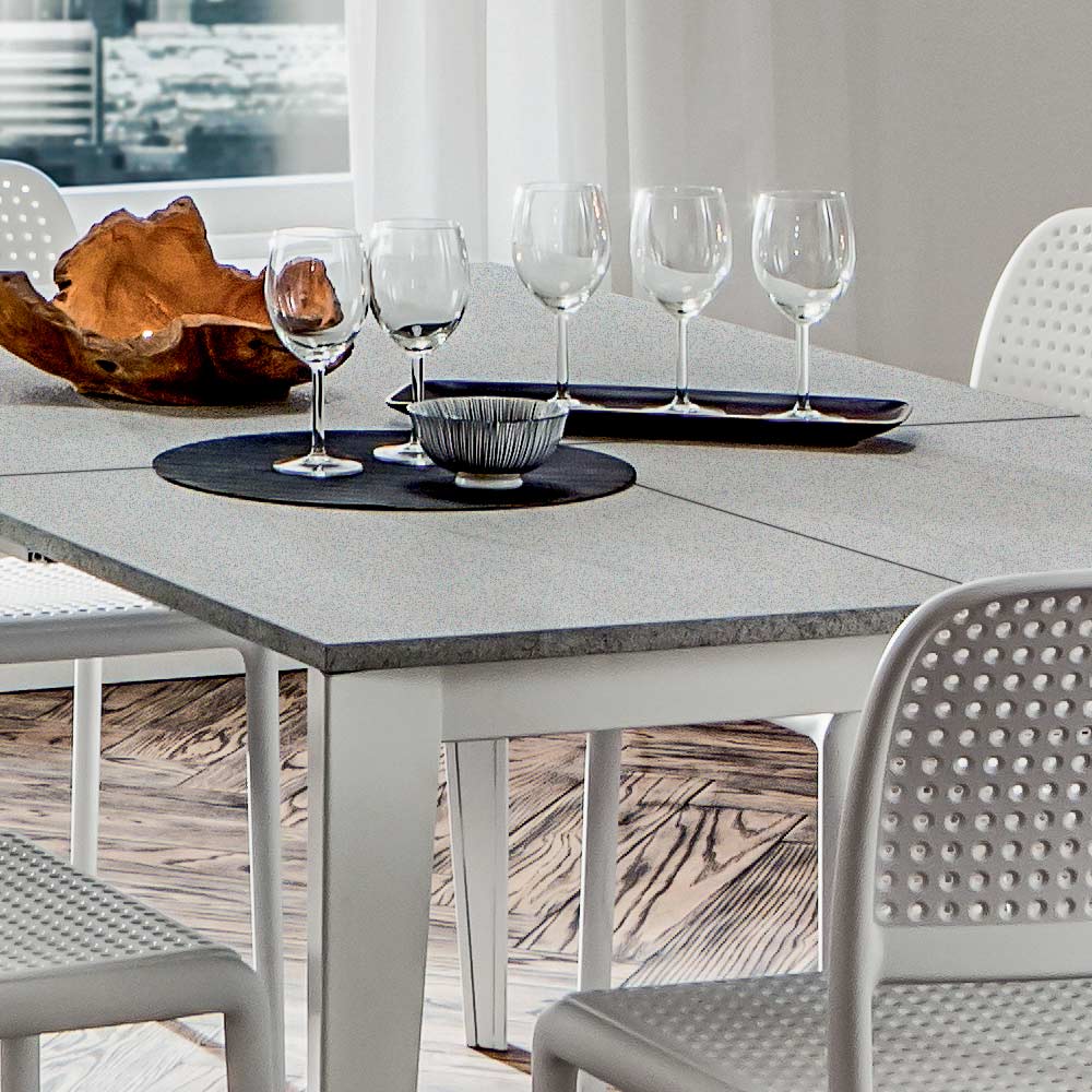 Rozkładany stół jadalny z kwadratowym blatem z hpl Wykonany we Włoszech, wysokiej jakości.