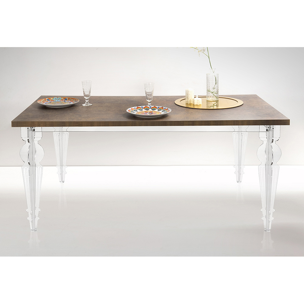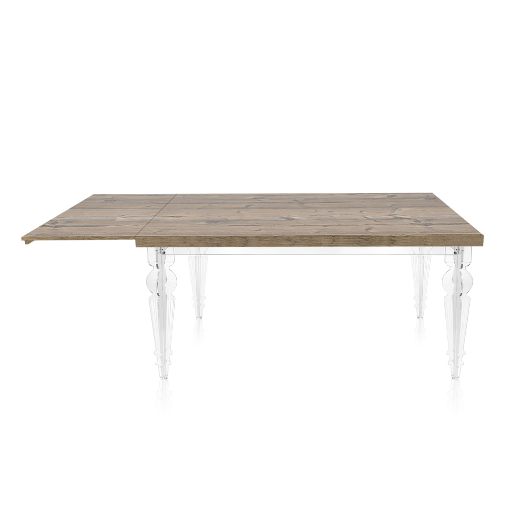 Rozkładany stół jadalny do 255 cm z pleksiglasu i drewna Made in Italy.