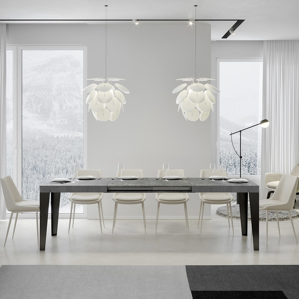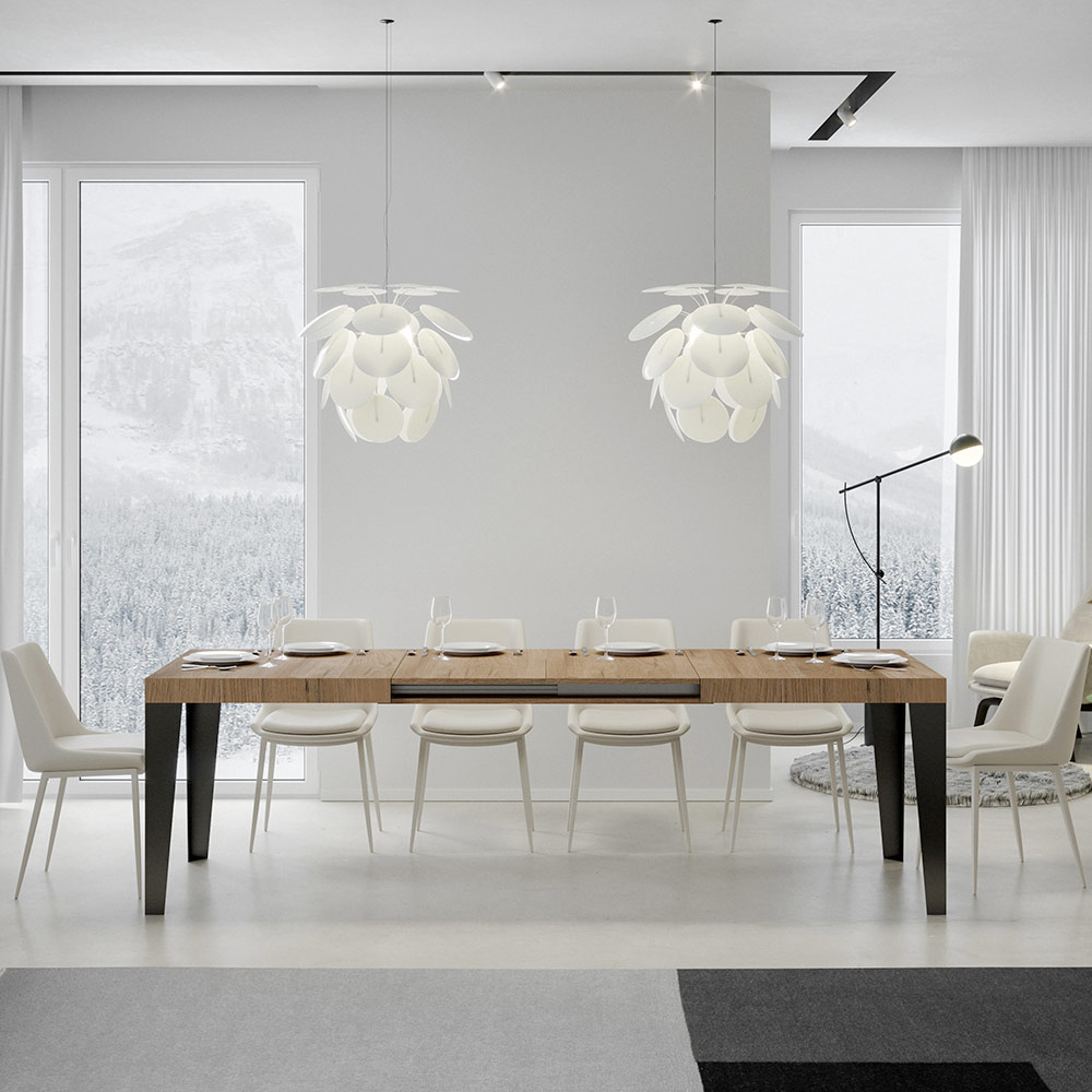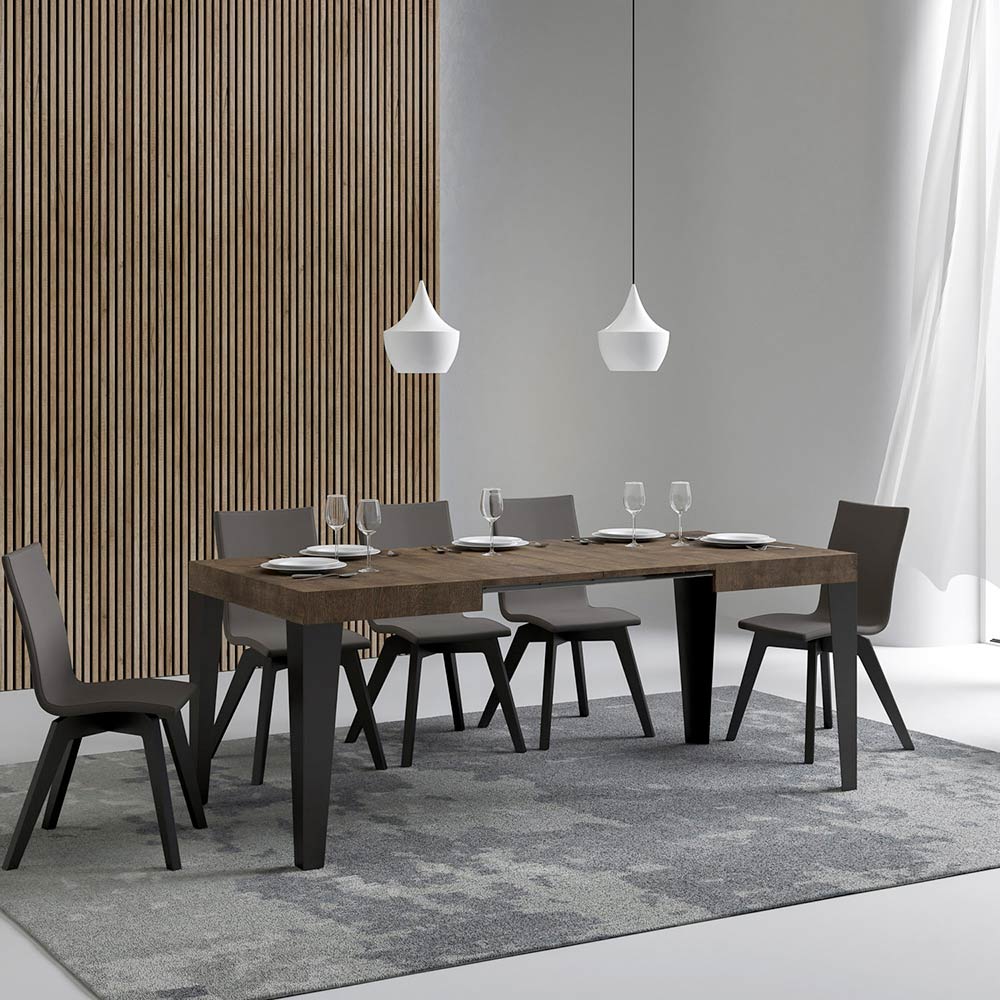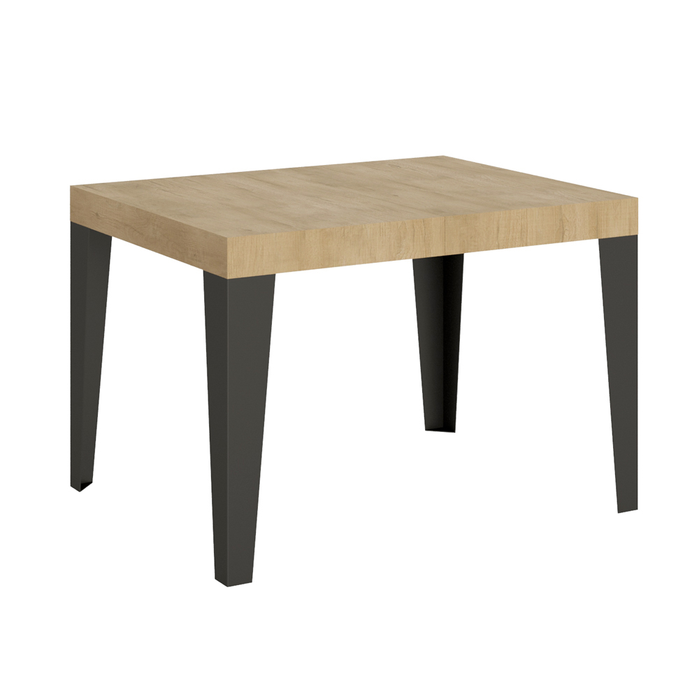 Rozkładany stół do jadalni wykonany z drewna mikrocząsteczkowego i żelaznych nóg pomalowanych na antracyt, w całości wyprodukowany we Włoszech. .