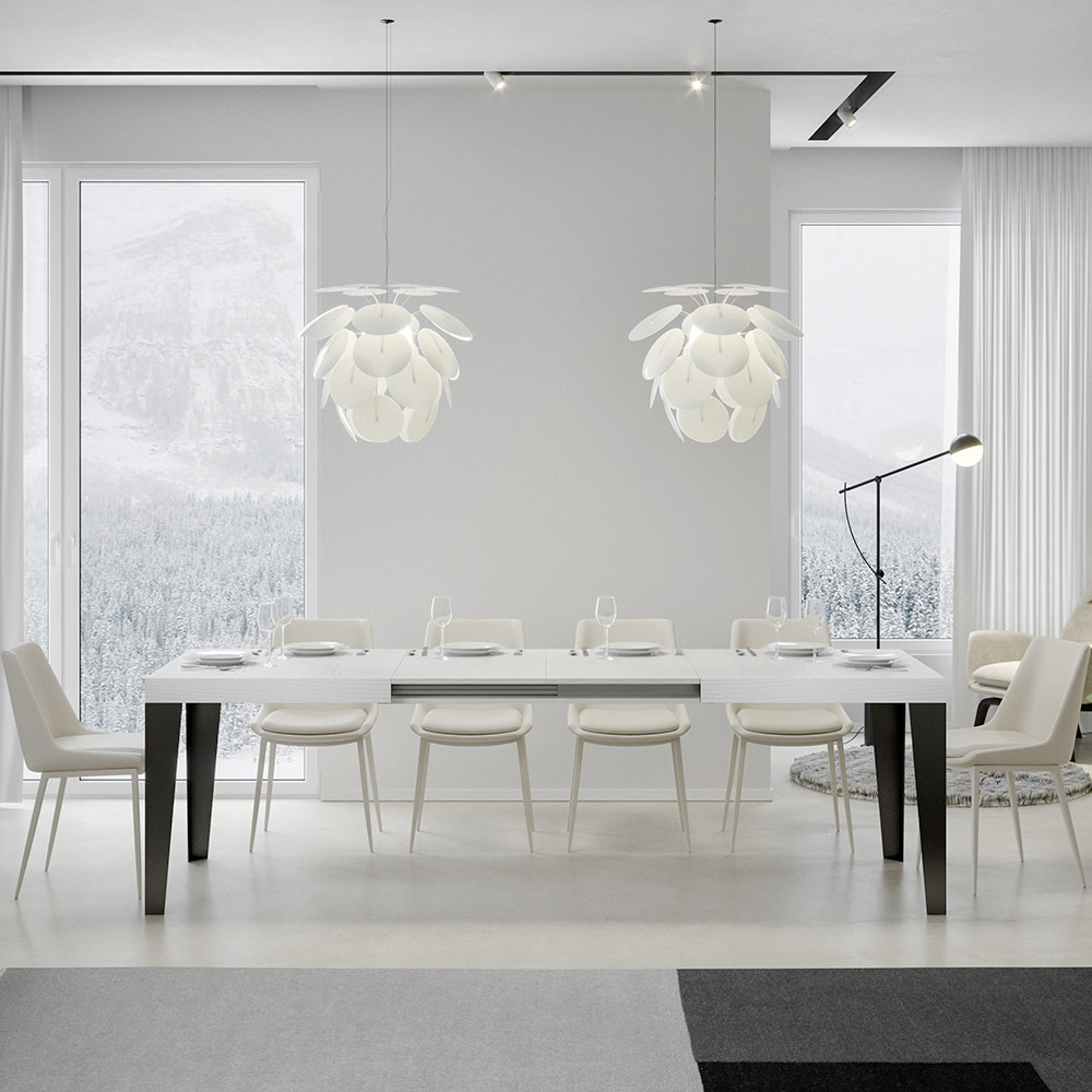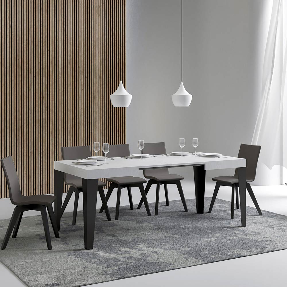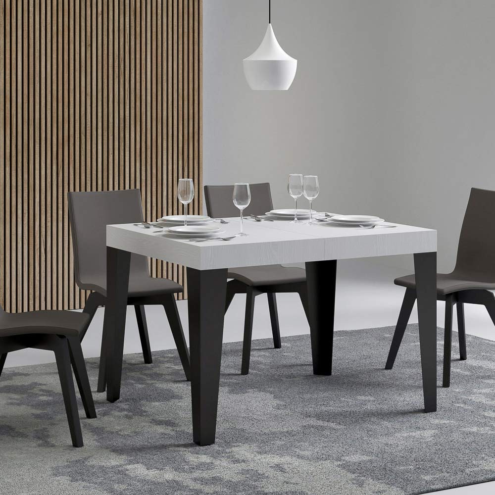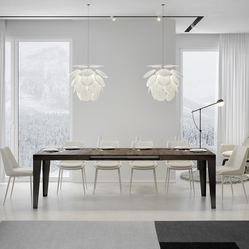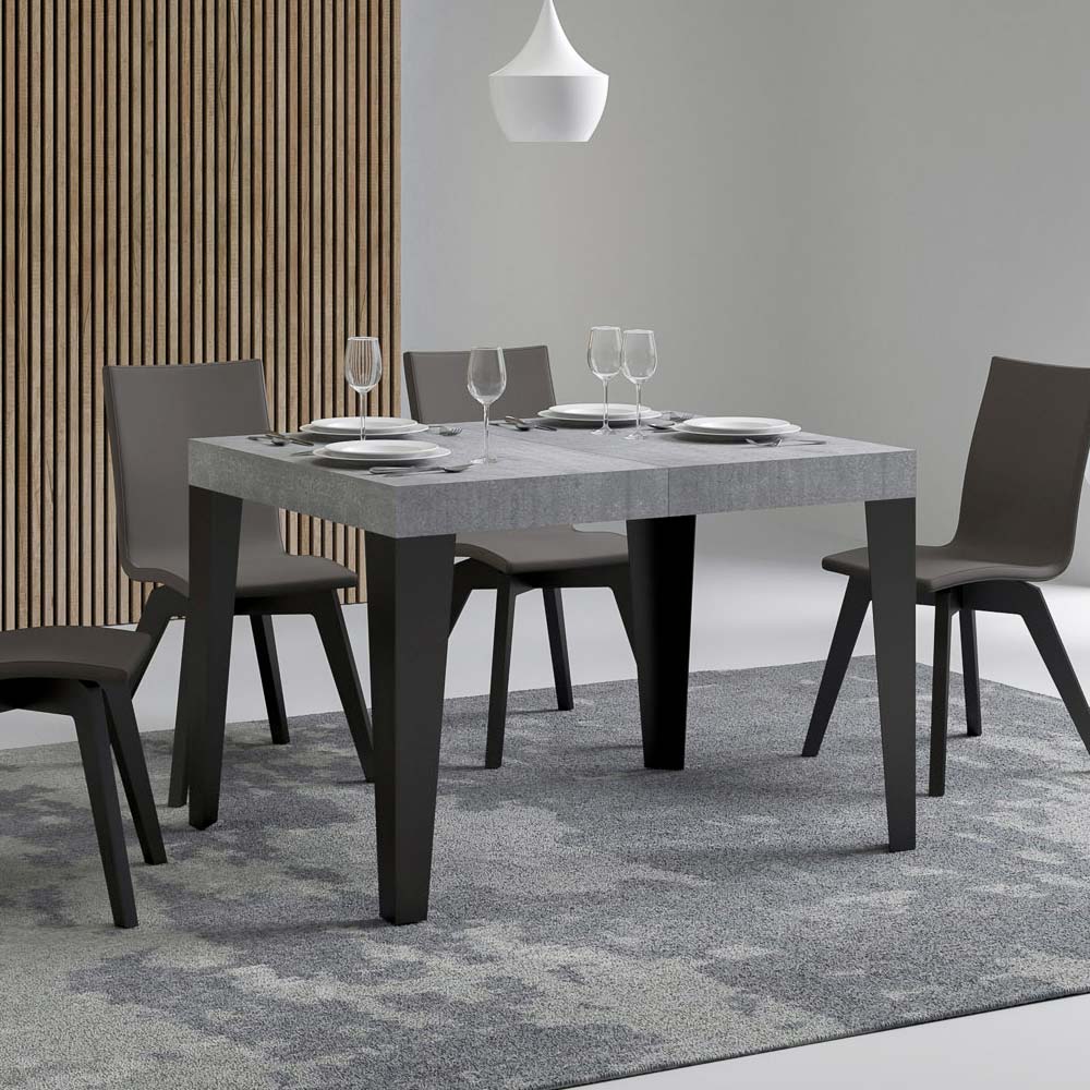 Rozkładany stół do jadalni wykonany z drewna mikrocząsteczkowego i żelaznych nóg pomalowanych na antracyt, w całości wyprodukowany we Włoszech. .