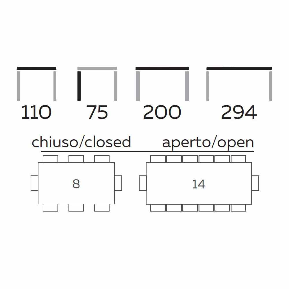 kamionki często 2,5 cm (kamionka 6 mm, MDF 19 mm), która dzięki obecności 2 zdejmowane przedłużenia 47 cm, może osiągnąć długość 294 cm, dzięki czemu może pomieścić do 14 osób na obiady i kolacje z przyjaciółmi.