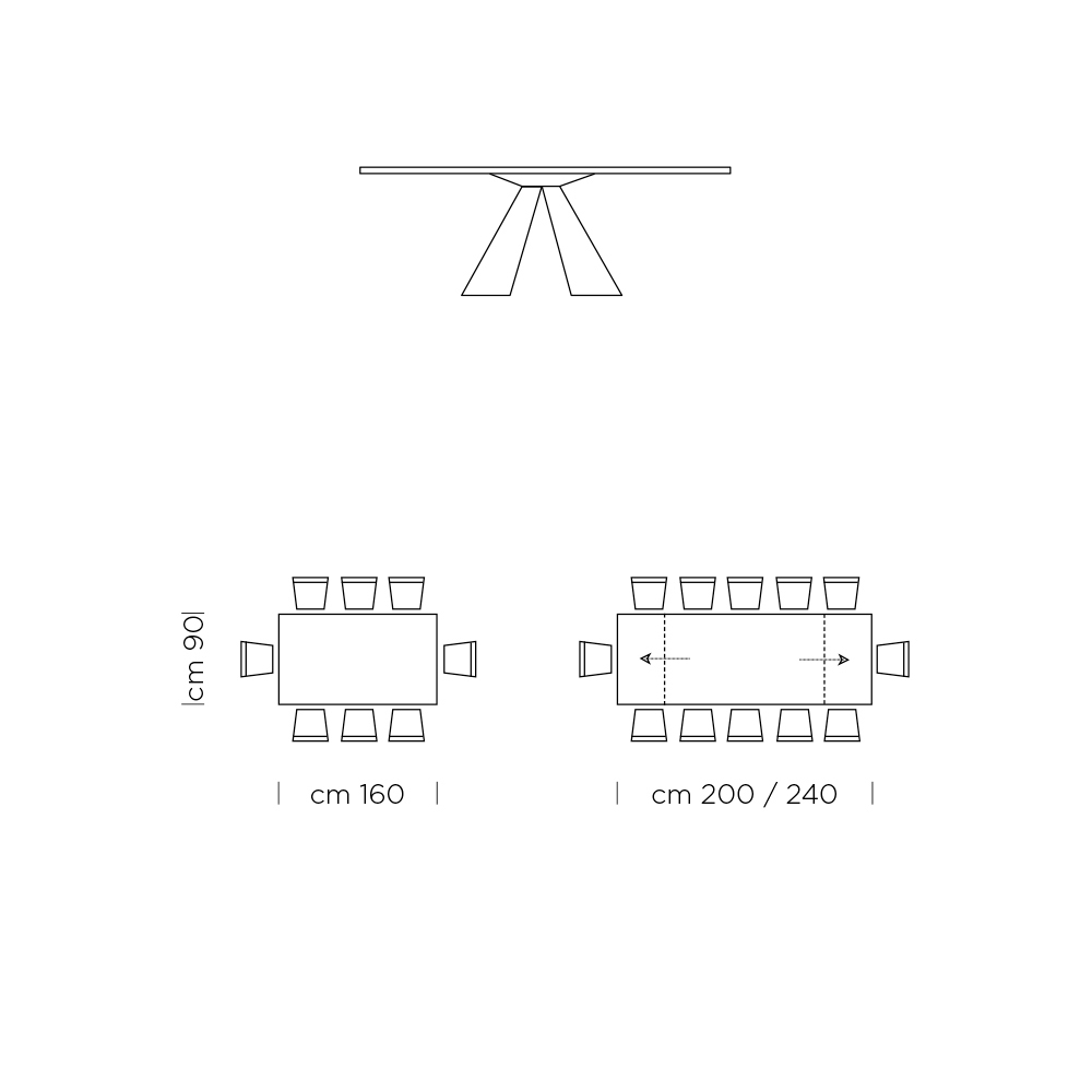 2 zewnętrznym przedłużeniom 40/50 cm, co pozwala zwiększyć dostępną przestrzeń, aby pomieścić maksymalnie 14 osób.