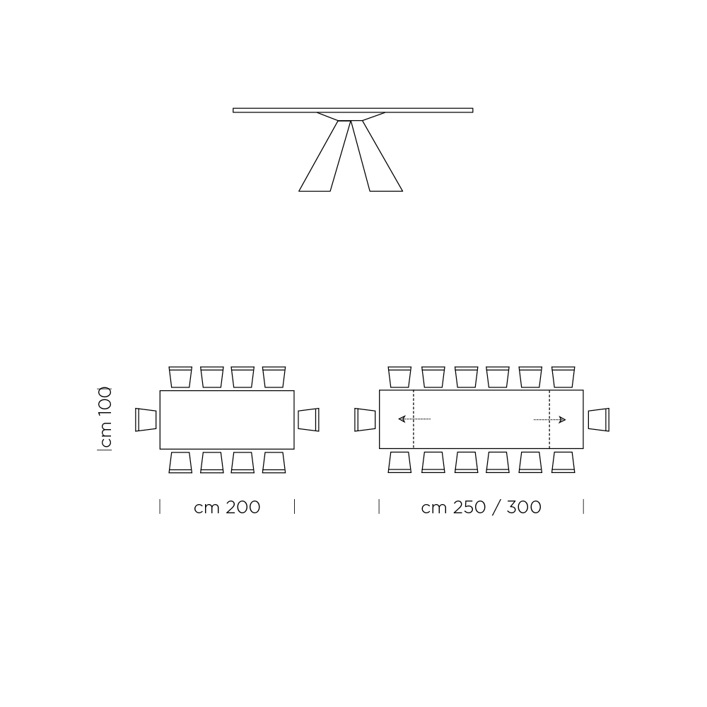 - Dł. 200/300 x gł. 100 x wys. 75,5 cm 14 miejsc (2 przedłużenia po 50 cm).