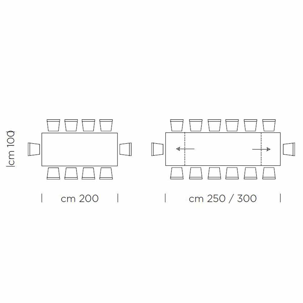 - Dł. 200/300 x gł. 100 x wys. 75,3 cm 14 miejsc (2 przedłużenia po 50 cm).