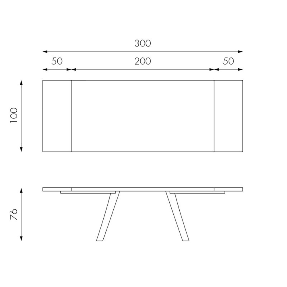 - Długość: 200/300 cm x Głębokość: 100 cm x Wysokość: 76 cm