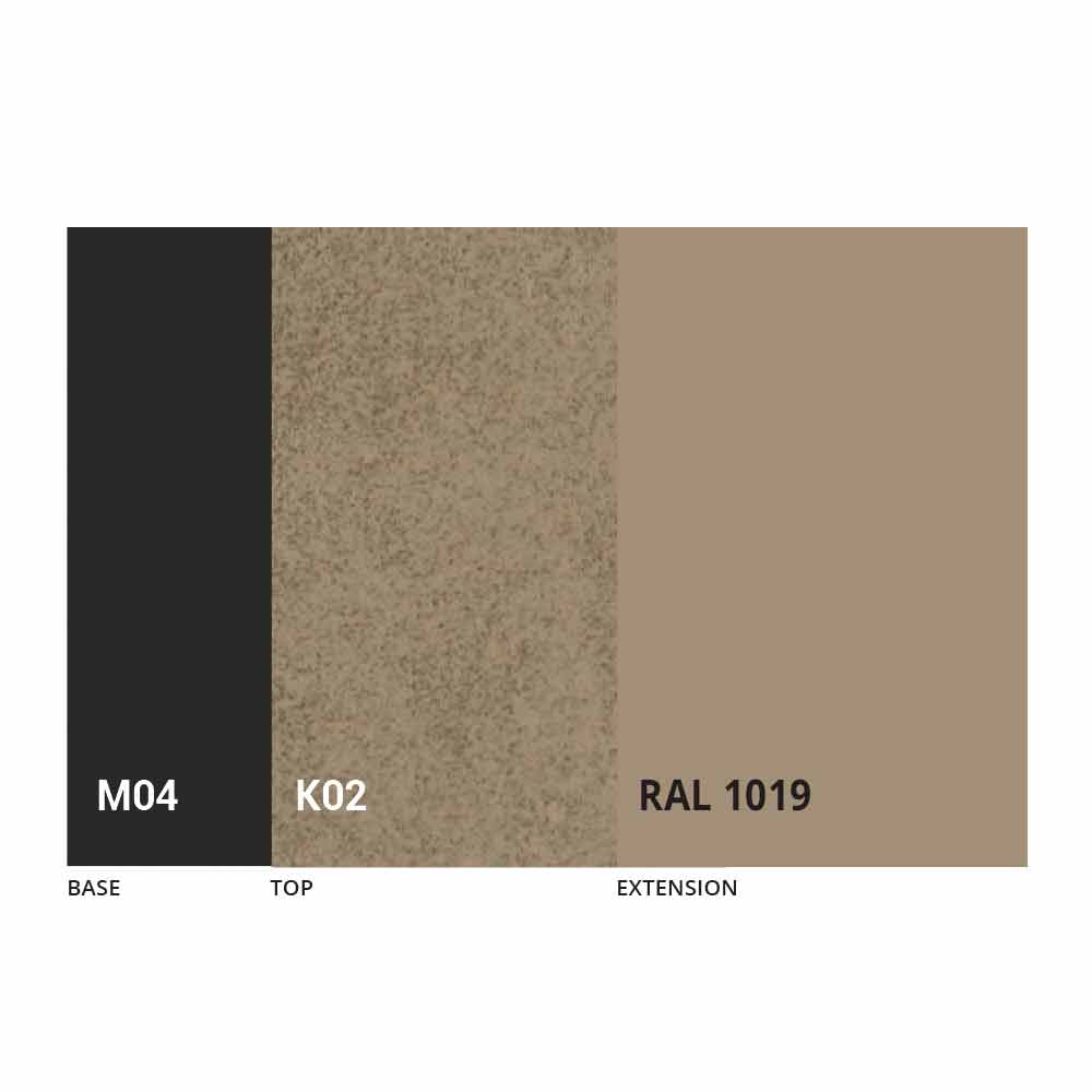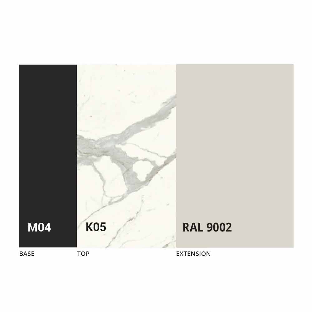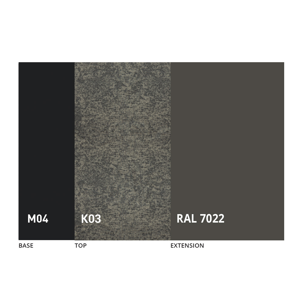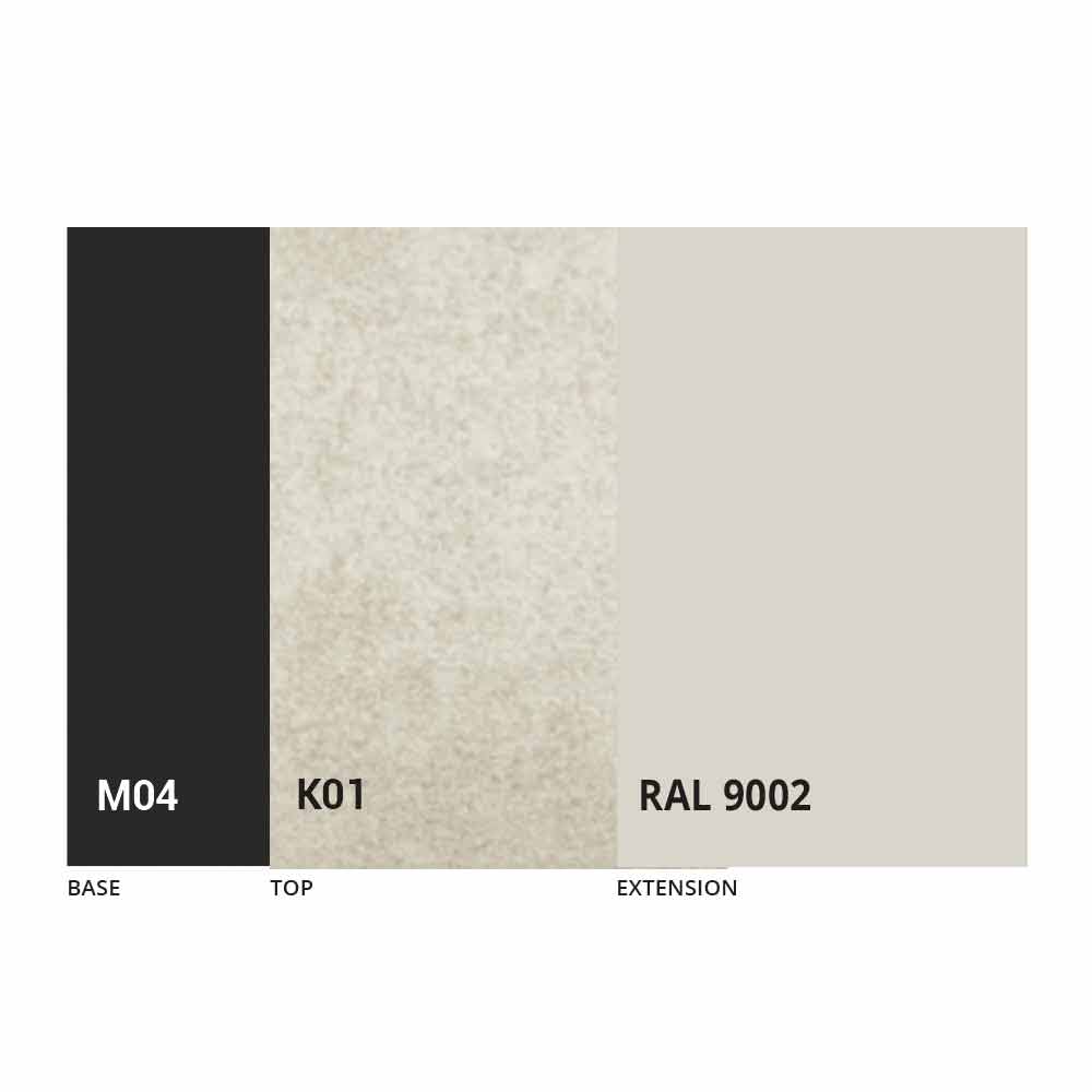 Blat, przedłużenie i podstawę stołu można dostosować za pomocą różnych próbnych wykończeń. Aby uzyskać informacje, skontaktuj się z nami za pomocą formularza „