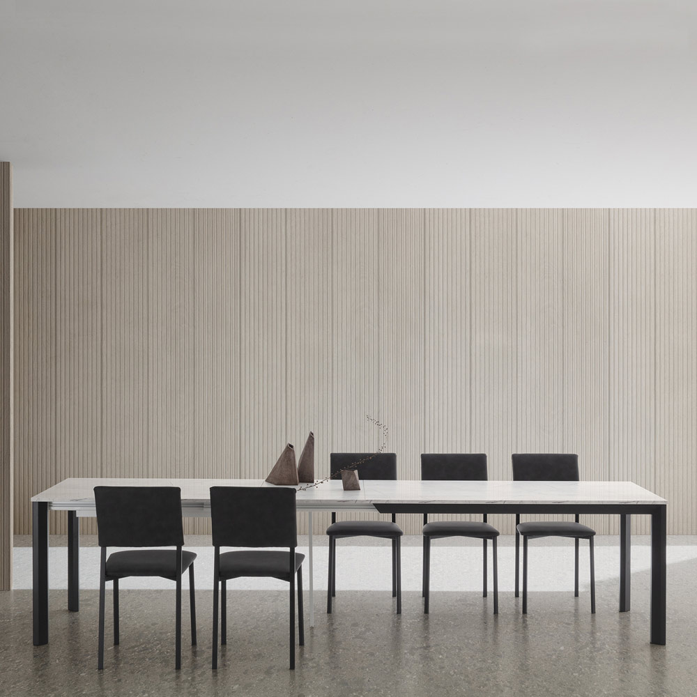 Rozkładany stół do jadalni z aluminiową podstawą i blatem z HPL Wyprodukowano we Włoszech.