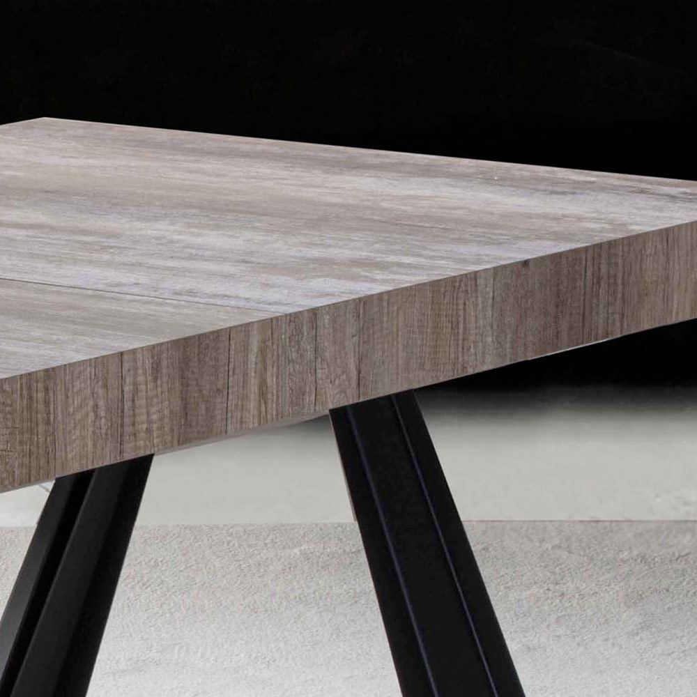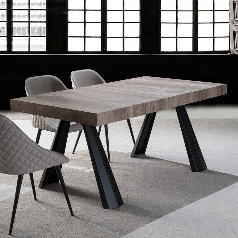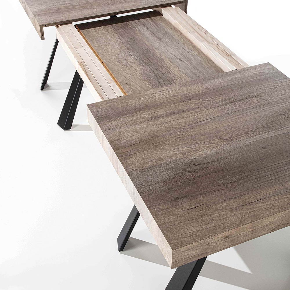 Stół rozkładany do 500 cm z drewna melaminowego i malowanego metalu.