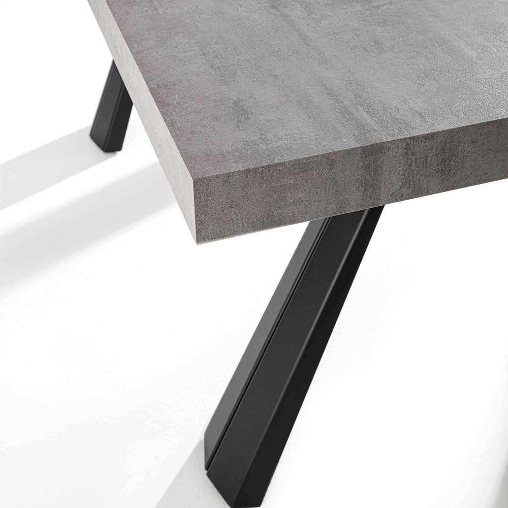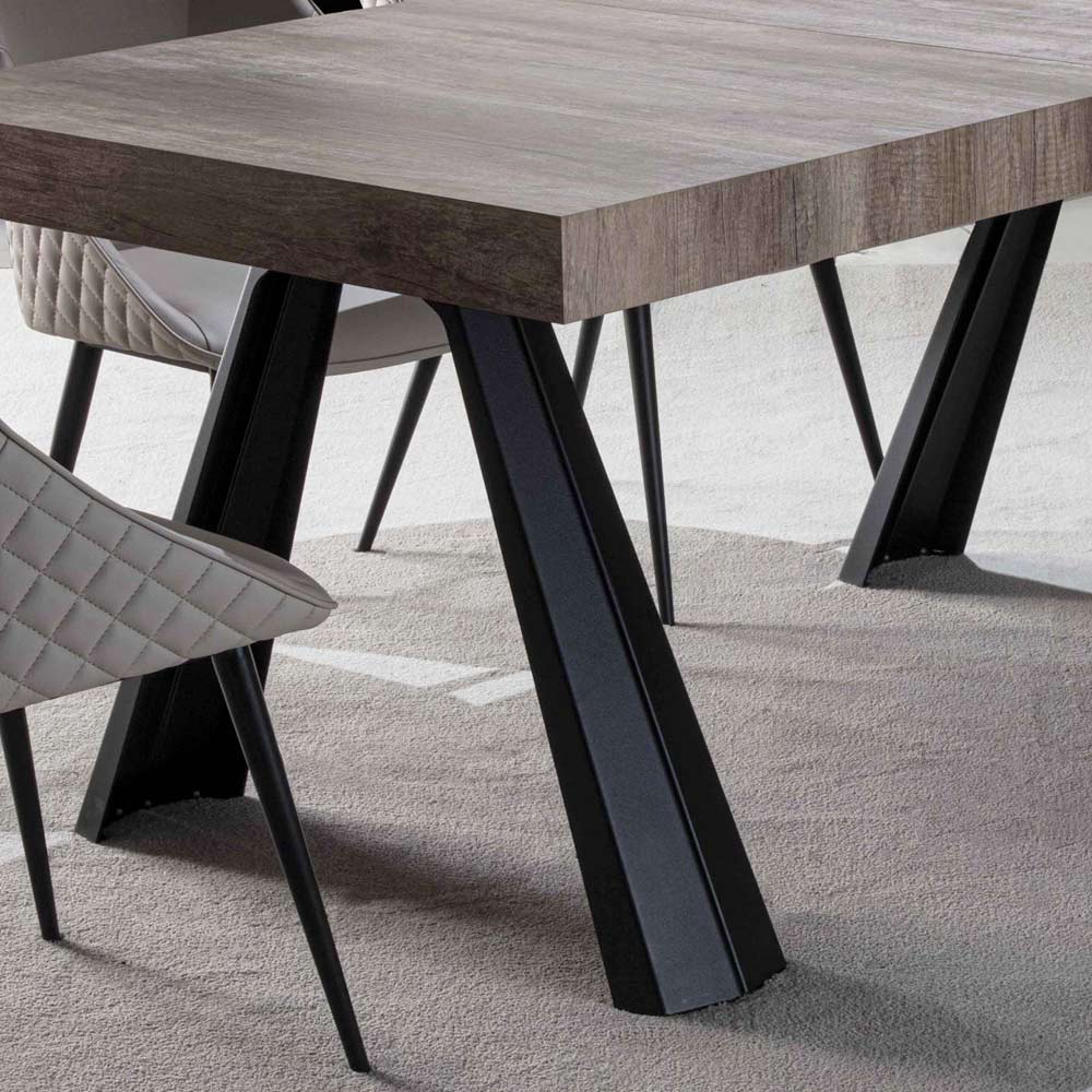 malowanego na czarno metalu . Jego osobliwością jest możliwość przedłużenia blatu do maksymalnej długości 410 lub 500 cm dzięki nadstawkom w tym samym kolorze, co pozwala pomieścić do 18 osób zapewniając wspaniałe obiady lub kolacje w towarzystwie przy zachowaniu jednorazowo mniejszych gabarytów Zamknięte. . Styl, który charakteryzuje projekt, opiera się na