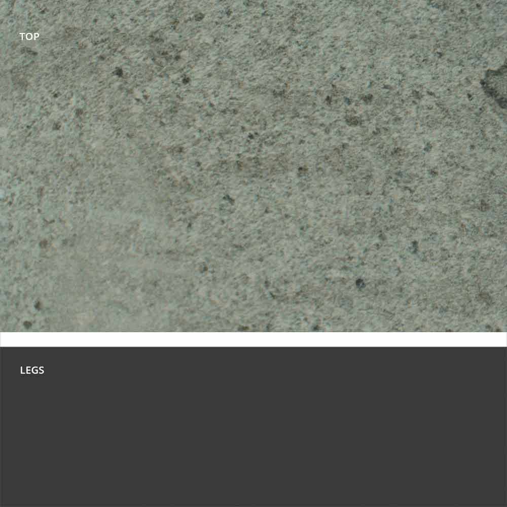 - podstawa wykonana z czarnego, szarego metalu (RAL 7021) i gresu w wykończeniu dymu.