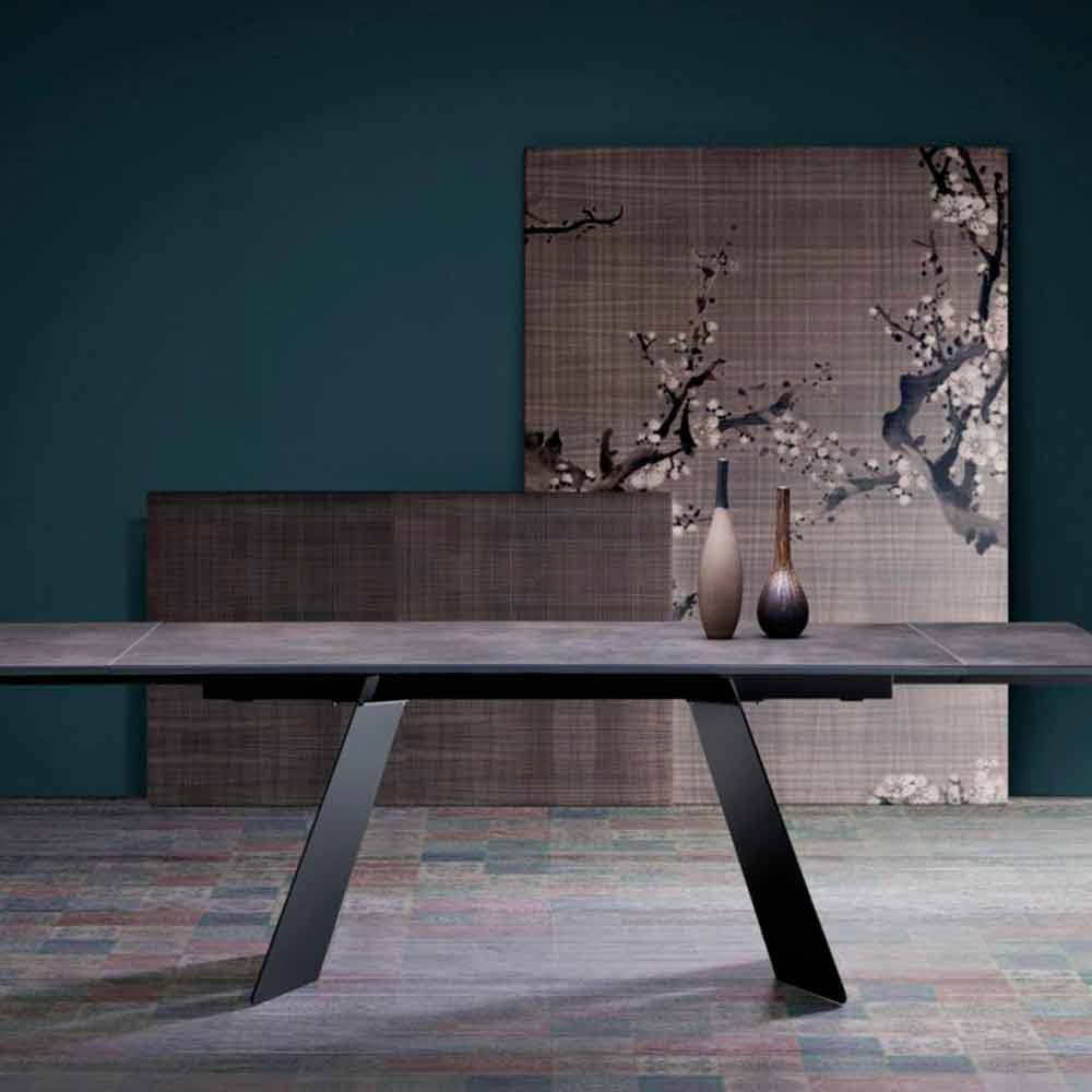 Wysuwany stół o nowoczesnym designie z kamionkowym blatem, Erve