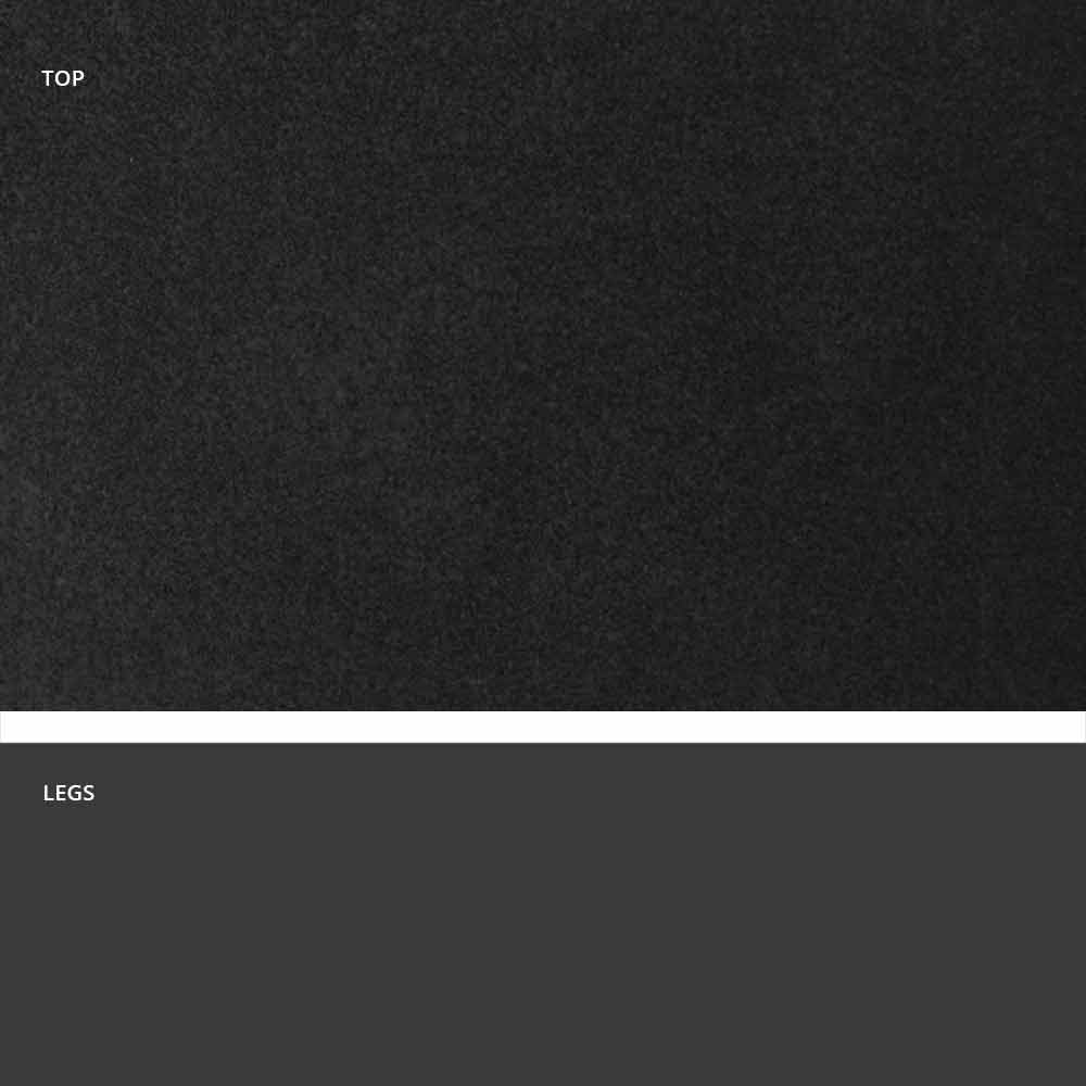 - podstawa wykonana z czarnego, szarego metalu (RAL 7021) i gresu w wykończeniu z żywicy hebanowej;