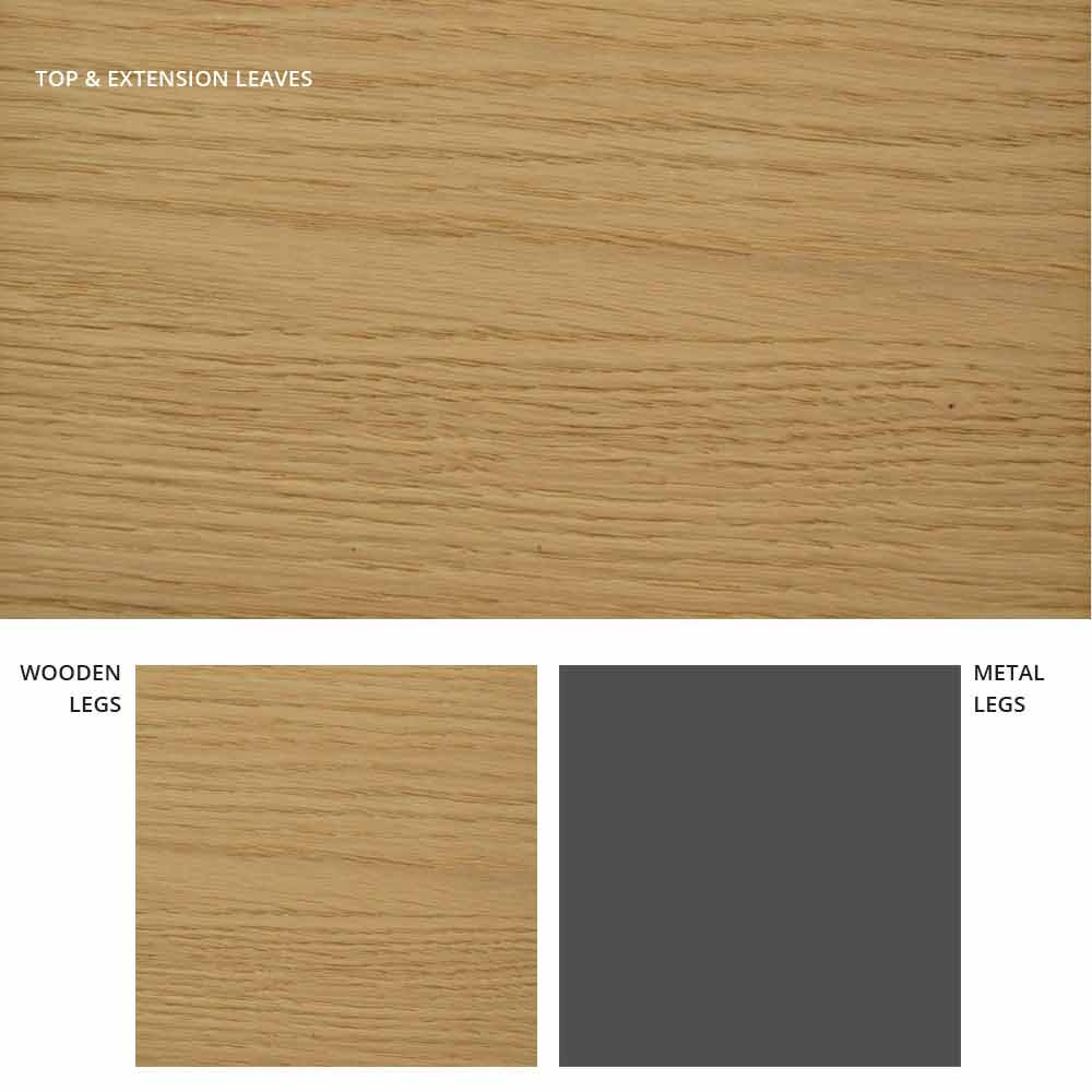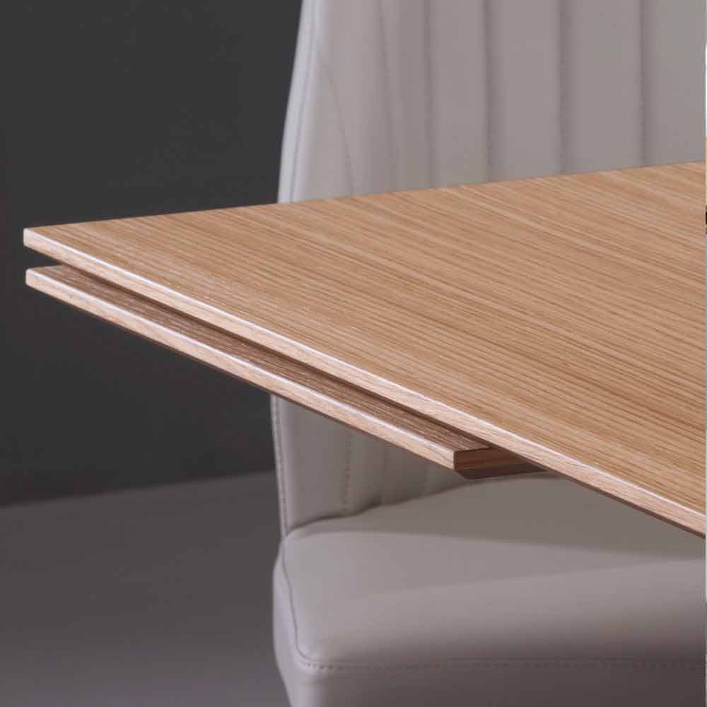 Blat i przedłużenia Daryla pokryte są naturalnym fornirem dębowym; blat ma także krawędź rozszerzoną pod kątem 45°.