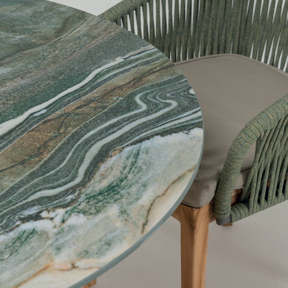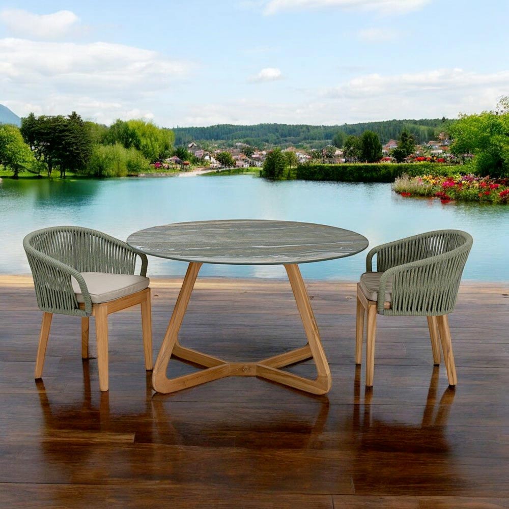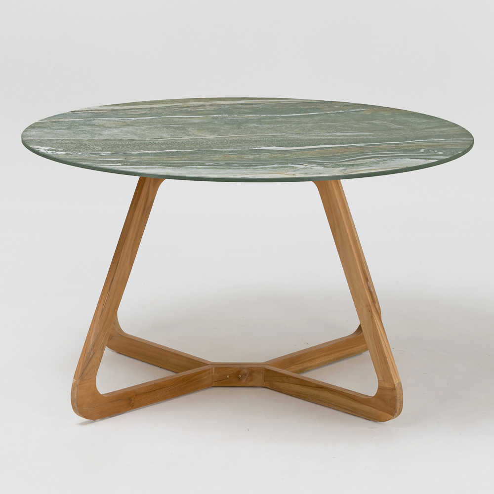 Stół z ceramicznym blatem i podstawą z drewna tekowego Made in Italy - Kask