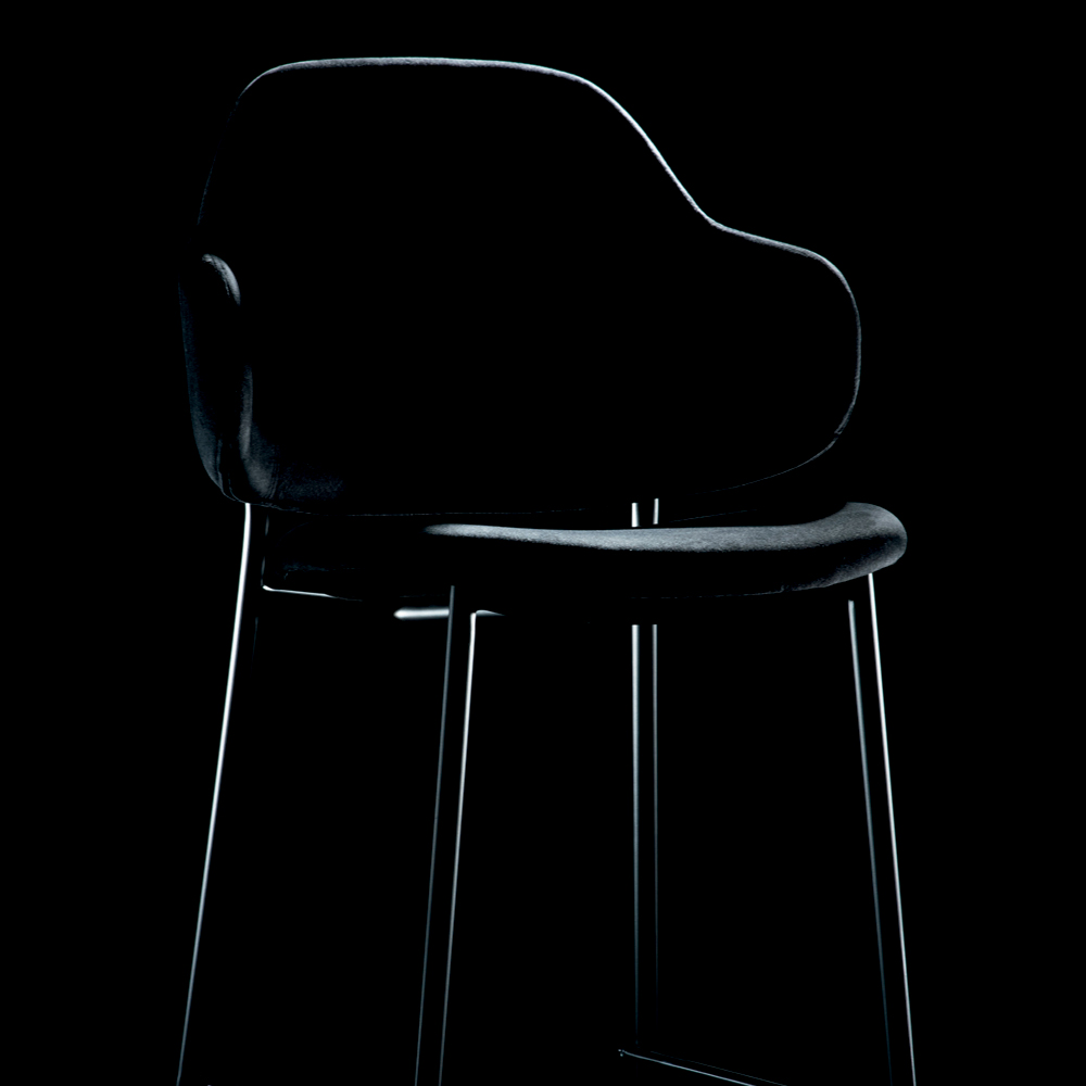 stali lakierowanej na czarno. Miękkie i otulające linie siedziska i oparcia charakteryzują się uspokajającymi kształtami. Idealny w jadalni, a także w kuchni, spersonalizuje otoczenie za pomocą designu i funkcjonalności. Uosabia styl, jakość, design i elegancję. Dzięki krętym, prostym i stylizowanym liniom nadaje się do każdego rodzaju mebli.