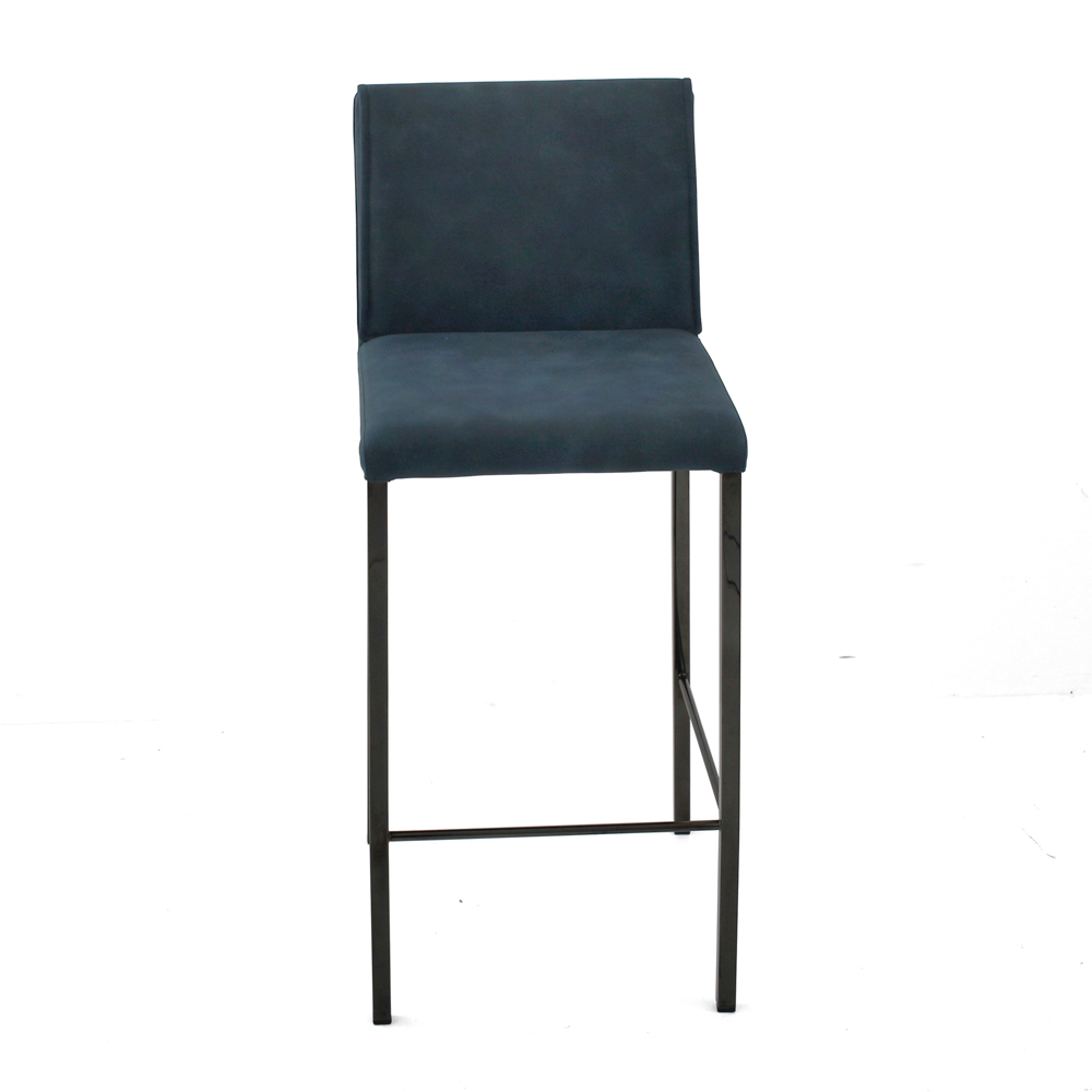 siedziskiem ze sztucznej skóry w kolorze benzyny. Stołek o ponadczasowym uroku, łączy w sobie