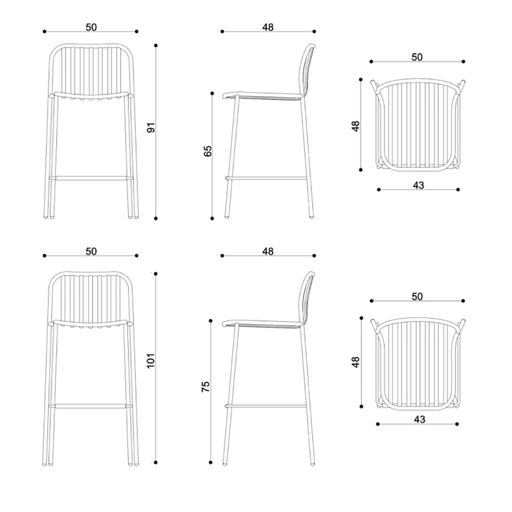 - dł. 50 x szer. 48 x wys. 101 cm (wysokość siedziska 75 cm).