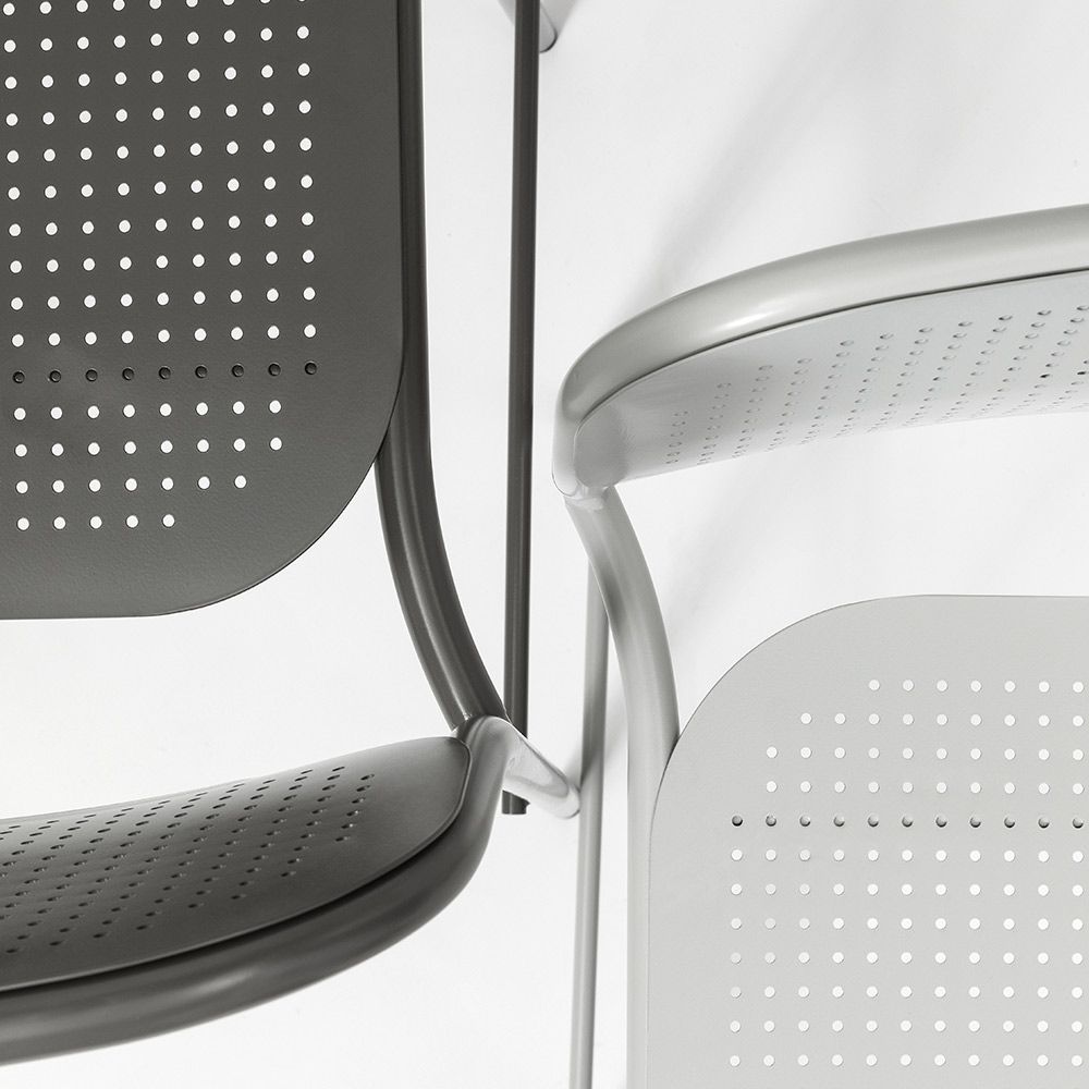 żywej i zabawnej estetyki, ale także dla tych, którzy kochają bardziej stonowany i elegancki styl. Możliwość sztaplowania podkreśla również jego funkcjonalną stronę i sprawia, że jest to idealne rozwiązanie również dla środowisk kontraktowych, takich jak bary i restauracje, gdzie niezbędna jest możliwość optymalizacji przestrzeni, gdy fotele nie są używane.