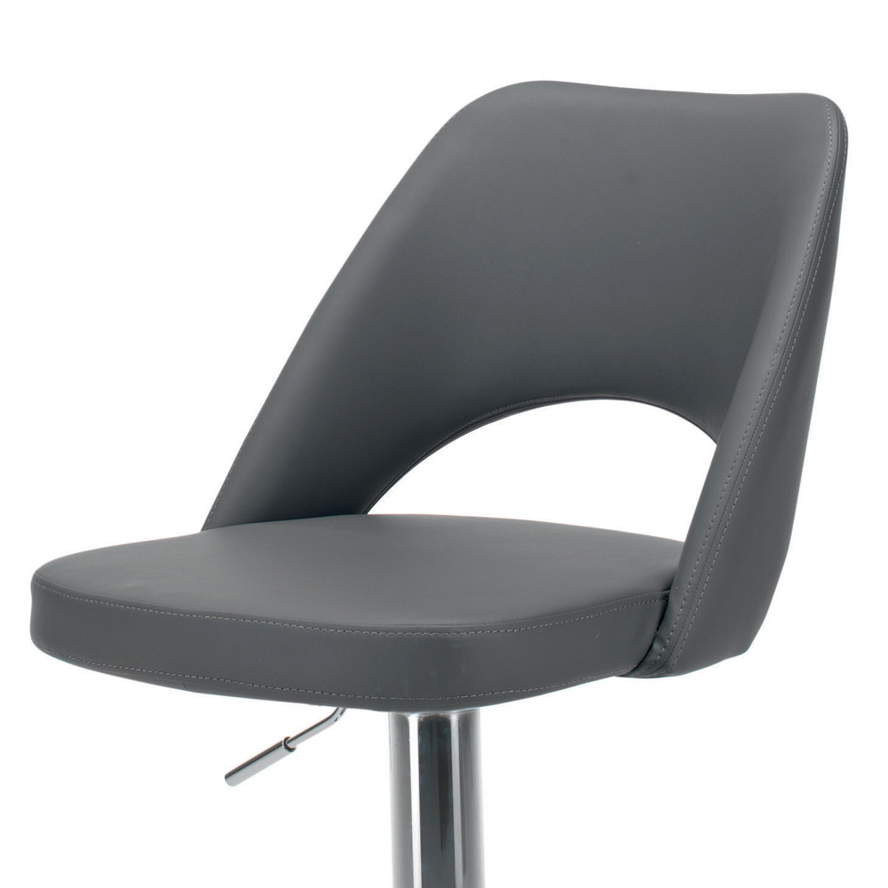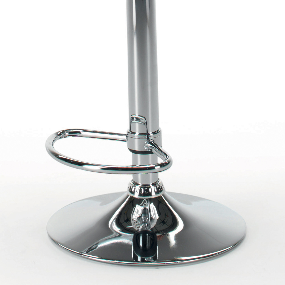 Wysoki stołek z chromowanej stali z siedziskiem pokrytym ekoskórą Wyprodukowano we Włoszech.