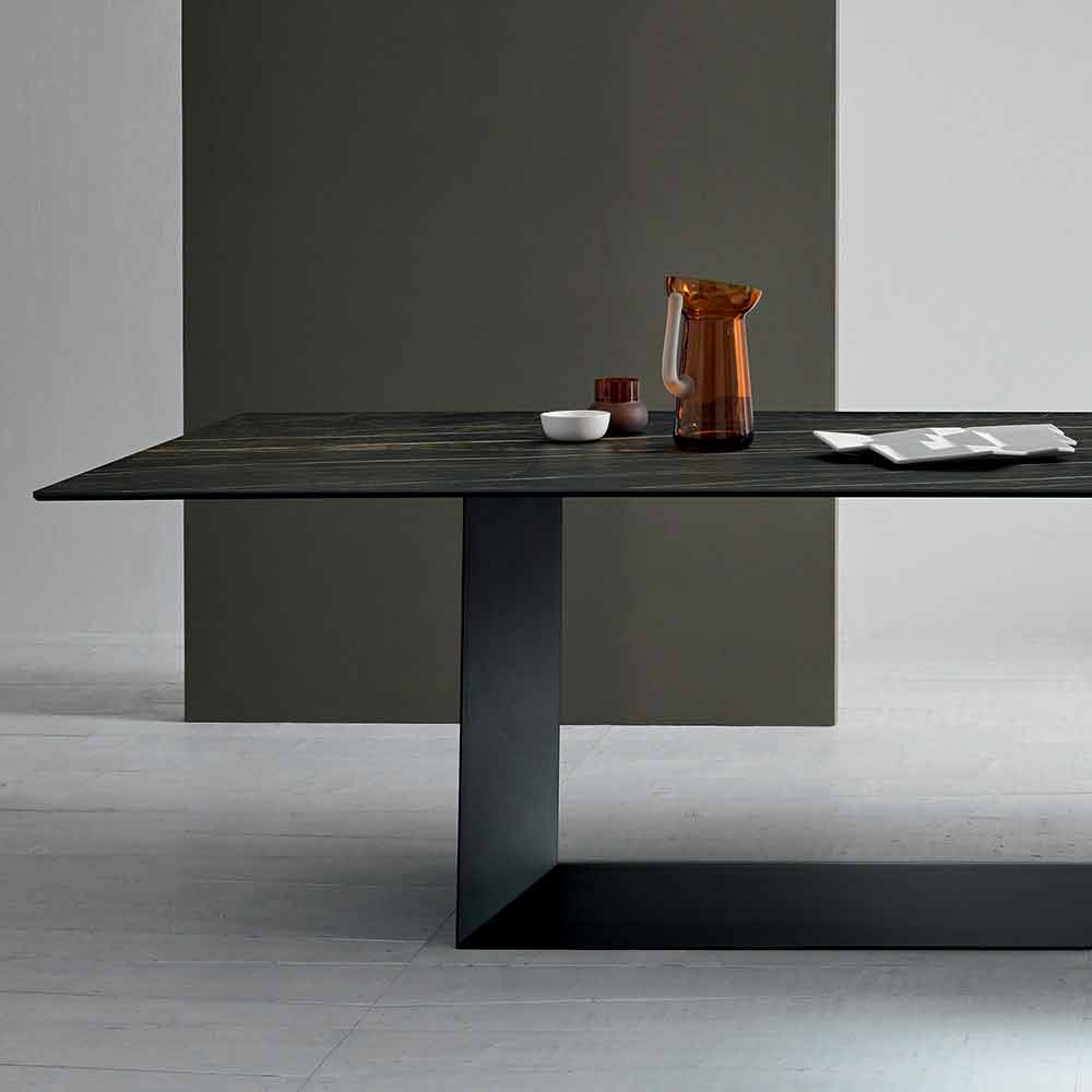 Stół do salonu z matowej ceramiki Noir Desir i podstawa z matowego grafitu w kolorze czarnym lub szczotkowanego brązowego metalu, wyprodukowany we Włoszech.