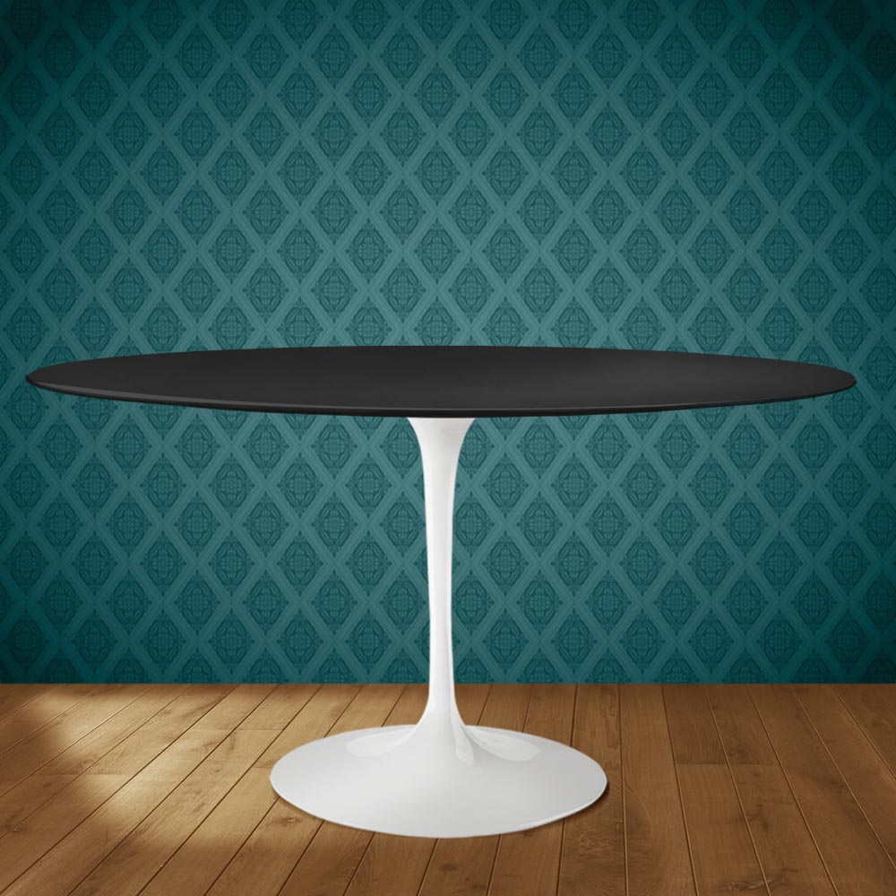 Stół jadalny z owalnym blatem z ceramiki Dekton Domoos, w matowym czarnym wykończeniu i polerowaną aluminiową podstawą, w całości wyprodukowany we Włoszech. Ten stół wyróżnia się dwiema cechami: owalnym kształtem i ceramiką Dekton Domoos. Innowacyjny owalny kształt zyskuje coraz większą popularność w salonach i kuchniach, gdzie oryginalnie urządza się wnętrza, idealnie wpisując się w nowoczesny i wyrafinowany styl.Złożona i wyrafinowana grafika oraz kolorystyka ceramiki Dekton Domoos sprawiają, że pomieszczenie staje się ciepłe i przytulne, gwarantując funkcjonalność i jakość nawet z upływem lat. Ten stół jest idealny dla osób, które chcą nadać wnętrzu niepowtarzalny i niezapomniany charakter.