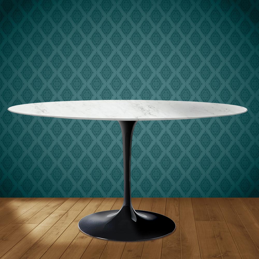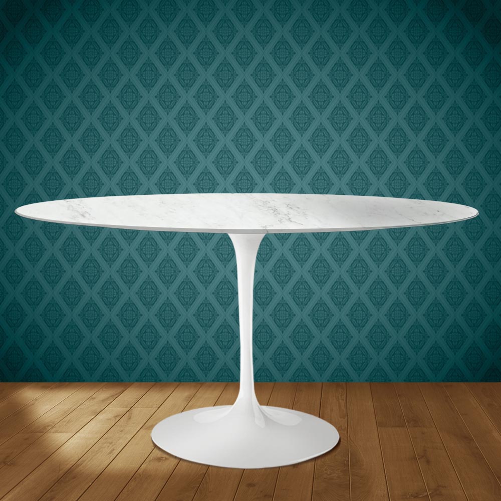 Stół jadalny z owalnym ceramicznym blatem Dekton Salina, imitującym polerowany marmur Carrara , oraz polerowaną aluminiową podstawą, w całości wyprodukowany we Włoszech. Ten stół wyróżnia się dwiema cechami: owalnym kształtem i ceramiką Dekton Salina. Innowacyjny, owalny kształt zyskuje coraz większą popularność w salonach i kuchniach, gdzie oryginalnie urządza się wnętrza, idealnie uzupełniając nowoczesny i wyrafinowany styl.Złożona i wyrafinowana grafika oraz kolorystyka ceramiki Dekton Salina sprawiają, że wnętrze staje się ciepłe i przytulne, gwarantując funkcjonalność i jakość nawet z upływem lat. Ten stół jest idealny dla osób, które chcą nadać swojej przestrzeni niepowtarzalny i niezapomniany charakter.
