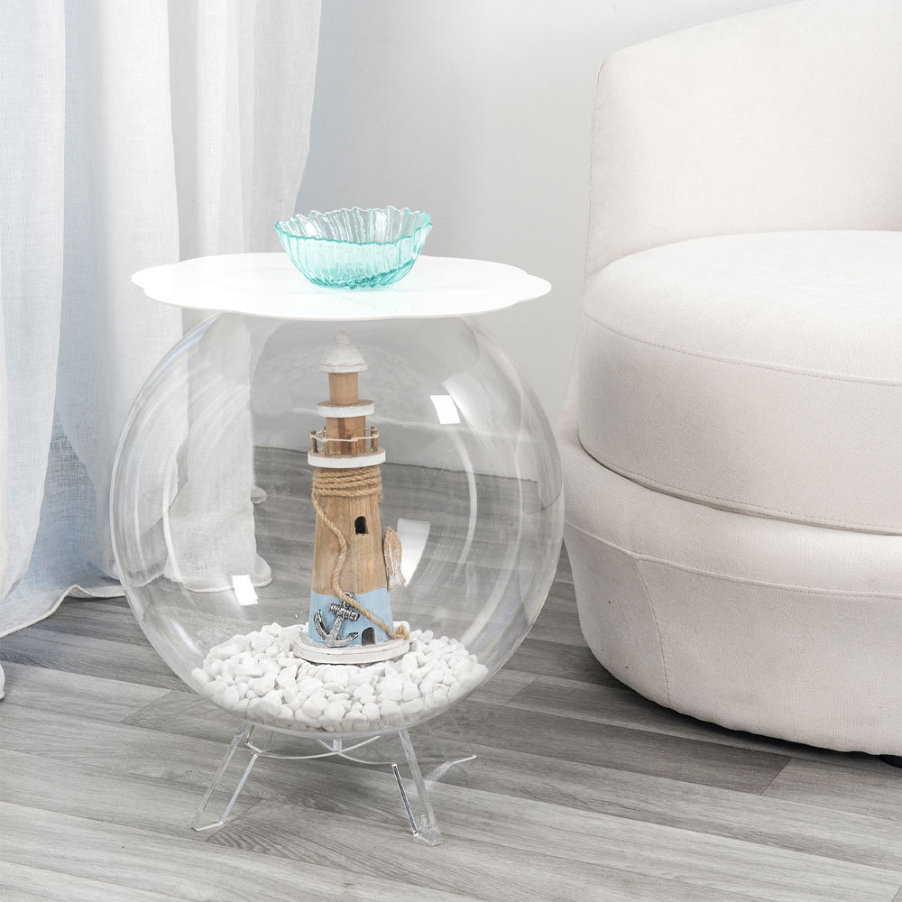 Pleksiowy stolik kawowy / pojemnik o sferycznej strukturze, który może służyć jako wazon do kompozycji kwiatowych, jako akwarium, jako pojemnik na zabawki lub jako kosz na bieliznę. Przezroczystość stołu BIFFY sprawia, że jest to element o dyskretnym designie, który można łatwo umieścić w domu. Półka wykonana jest w 100% z pleksi PMMA z czystego białego polimeru. Pleksiszkło jest odporne na wstrząsy, nieodkształcalne, nieodwracalne i termoizolacyjne. Jasność i jasność są utrzymywane na stałym poziomie i niezmienione w czasie. Pleksi PMMA z pierwotnego polimeru jest nietoksyczny, hipoalergiczny, bezwonny i antybakteryjny. 100% do recyklingu. Zaprojektowany, zaprojektowany i wyprodukowany we Włoszech z włoskimi materiałami.