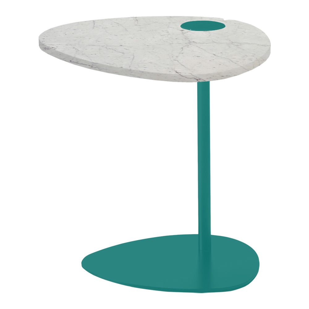 Wspornikowy stolik kawowy do designerskiego salonu z marmurowym blatem, wysokiej jakości wyprodukowany we Włoszech.
