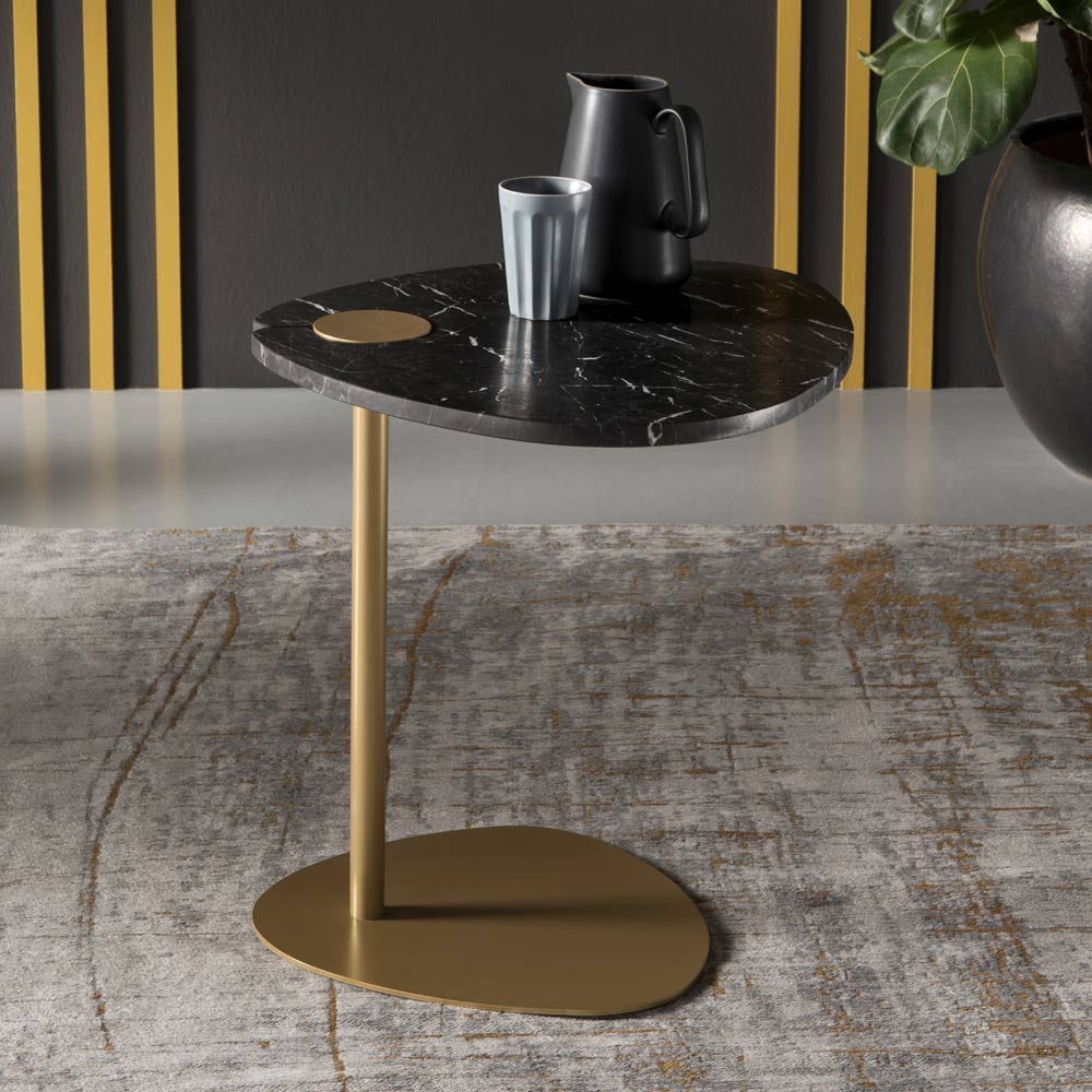 stolik do sofy do salonu inspirowany jest nieregularnymi i naturalnymi kształtami kamyków wygładzonych przez wodę. Poszczególne i interesujące linie różnią się, aby uwydatnić pomieszczenie i nadać mu odrobinę wyrafinowania. Jego