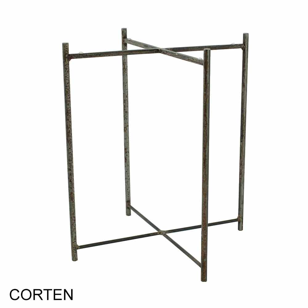 z metalu malowanego proszkowo, dzięki czemu produkt doskonale nadaje się do stosowania wewnątrz, ale także na zewnątrz, do gustownego i stylowego wyposażenia ogrodów i tarasów, natomiast blat