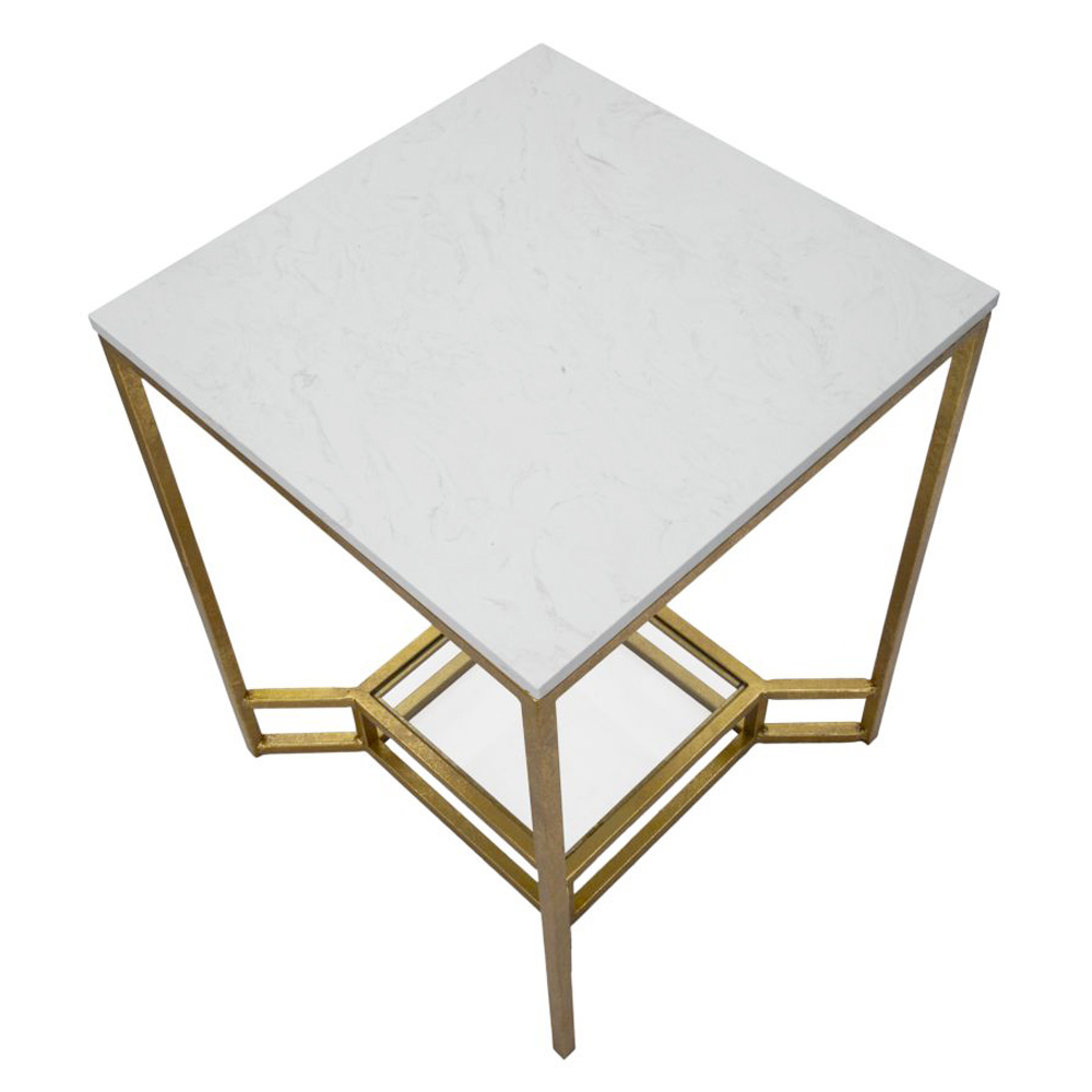 Stolik kawowy z żelazną konstrukcją o złotym wykończeniu wzbogacony szklaną wstawką i blatem z żywicy z efektem białego marmuru . Dopełnienie, które łączy elegancję i funkcjonalność w celu uzyskania optymalnego efektu, który może pełnić funkcję praktycznej powierzchni nośnej, a jednocześnie oryginalnego elementu dekoracyjnego w strefie dziennej. Jego projekt jest podkreślony prostymi geometrycznymi liniami, które sprawiają, że jest szczególnie wszechstronny i dlatego idealnie nadaje się do uzupełniania salonów o wyrafinowanym stylu w celu uzyskania ekskluzywnego i wyrafinowanego wyposażenia z osobowością.