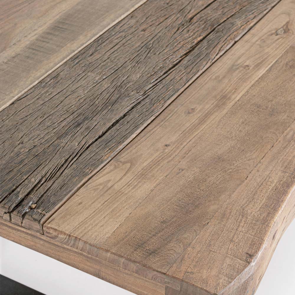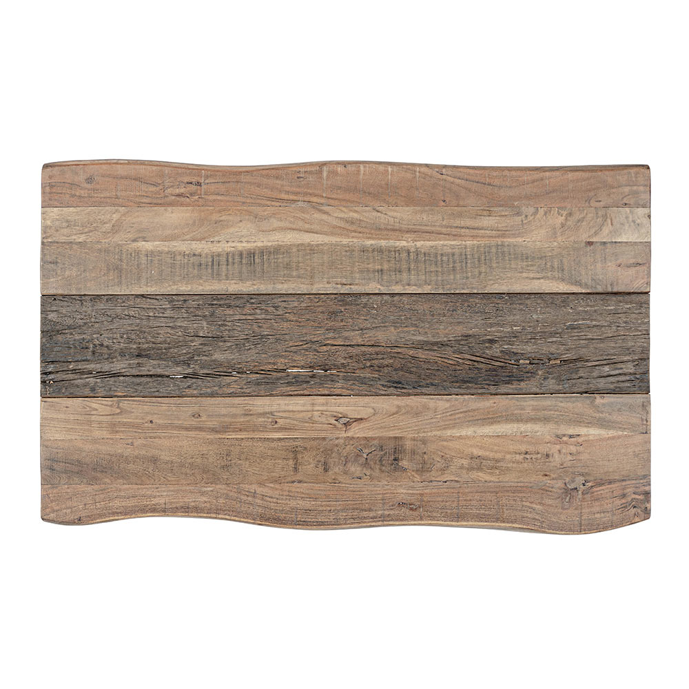 Stolik kawowy ze stali i drewna akacjowego z wkładką z recyklingu.