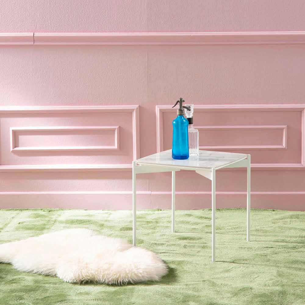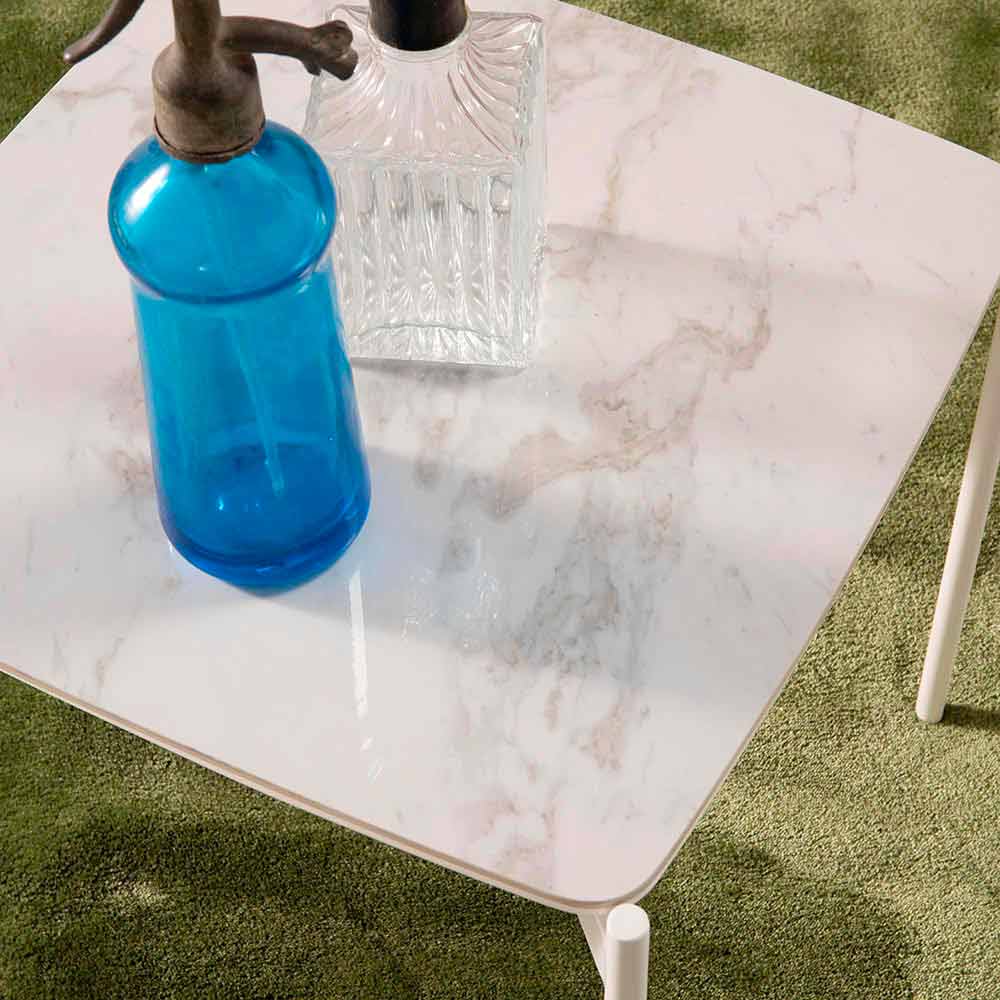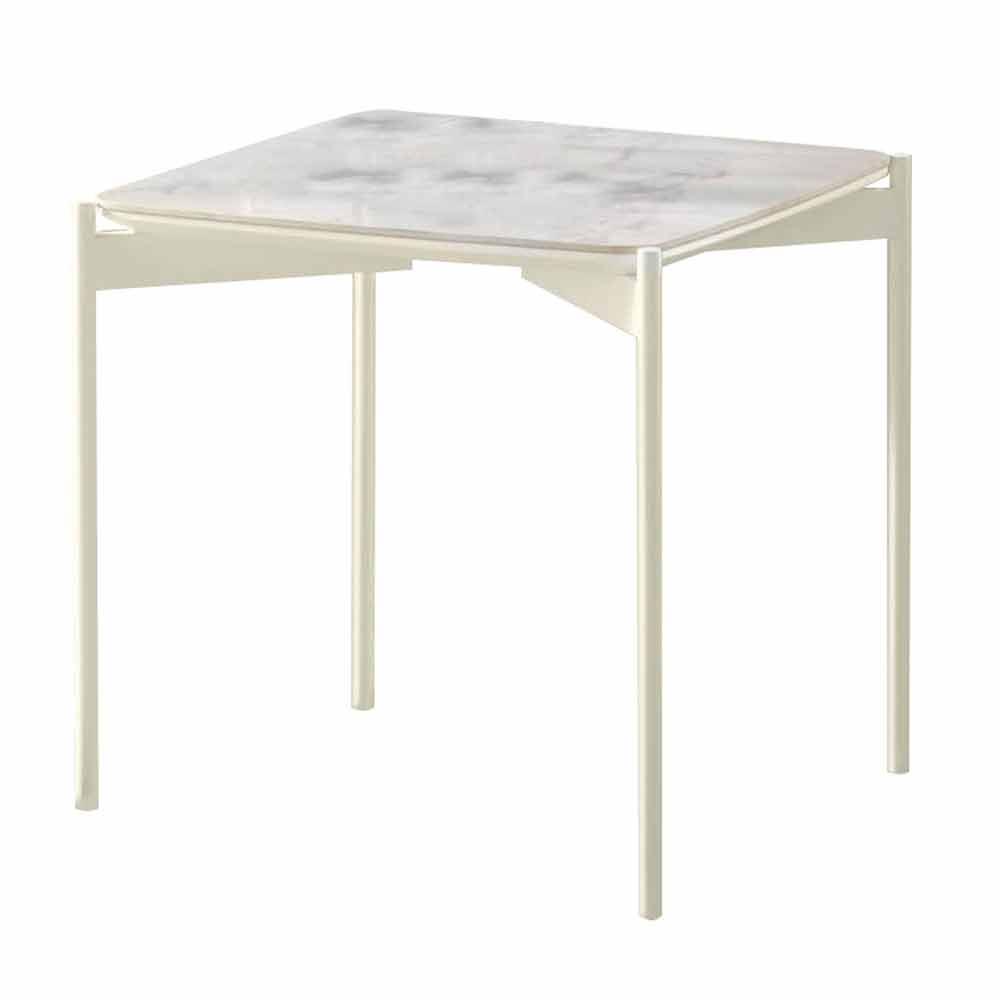 Istrice to kwadratowy stolik kawowy wykonany z płyty MDF z ceramiczną płytą na górze i metalową konstrukcją .