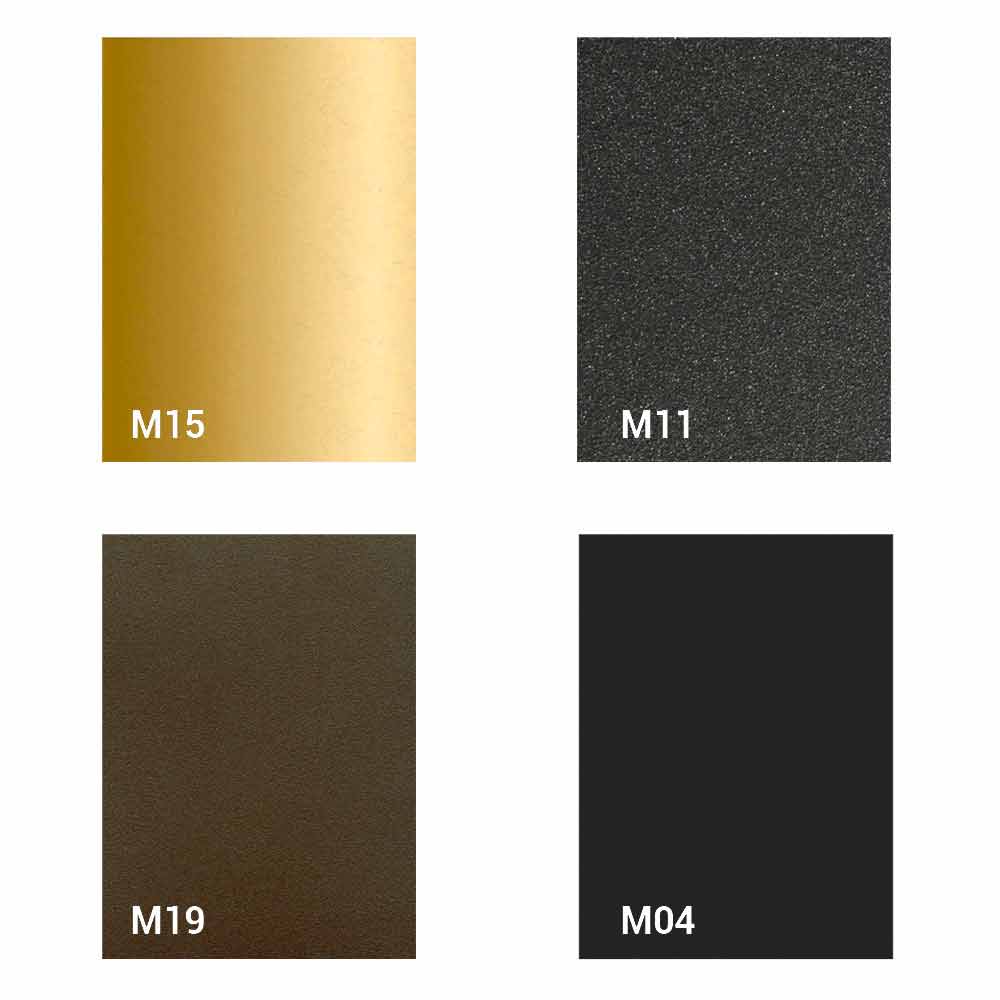 malowaną metalową podstawą: błyszczące złoto, wytłaczany grafit, wytłaczany brąz lub matowa czerń .