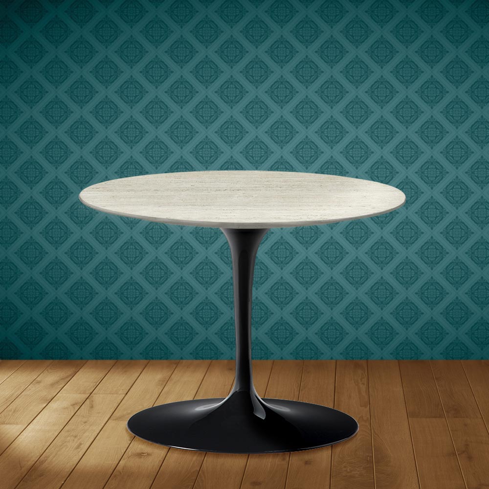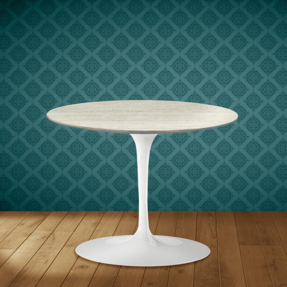 Stolik kawowy z okrągłym blatem z ceramiki marmurowej Dekton, matowym wykończeniem trawertynowym i polerowaną aluminiową podstawą, w całości wyprodukowany we Włoszech . Ten dodatek meblowy, dzięki prostemu i eleganckiemu wykończeniu , sprawdzi się w salonach urządzonych w różnych stylach. Główną cechą wyróżniającą go spośród podobnych produktów jest materiał wierzchni – ceramika marmurowa Dekton – doskonały sprzymierzeniec w tworzeniu bardziej przytulnej i przyjemnej atmosfery dzięki wykwintnej grafice . Co więcej, połączenie ceramiki Dekton i polerowanego aluminium tworzy idealne połączenie, dzięki któremu ten stolik kawowy sprawdzi się na każdą okazję.