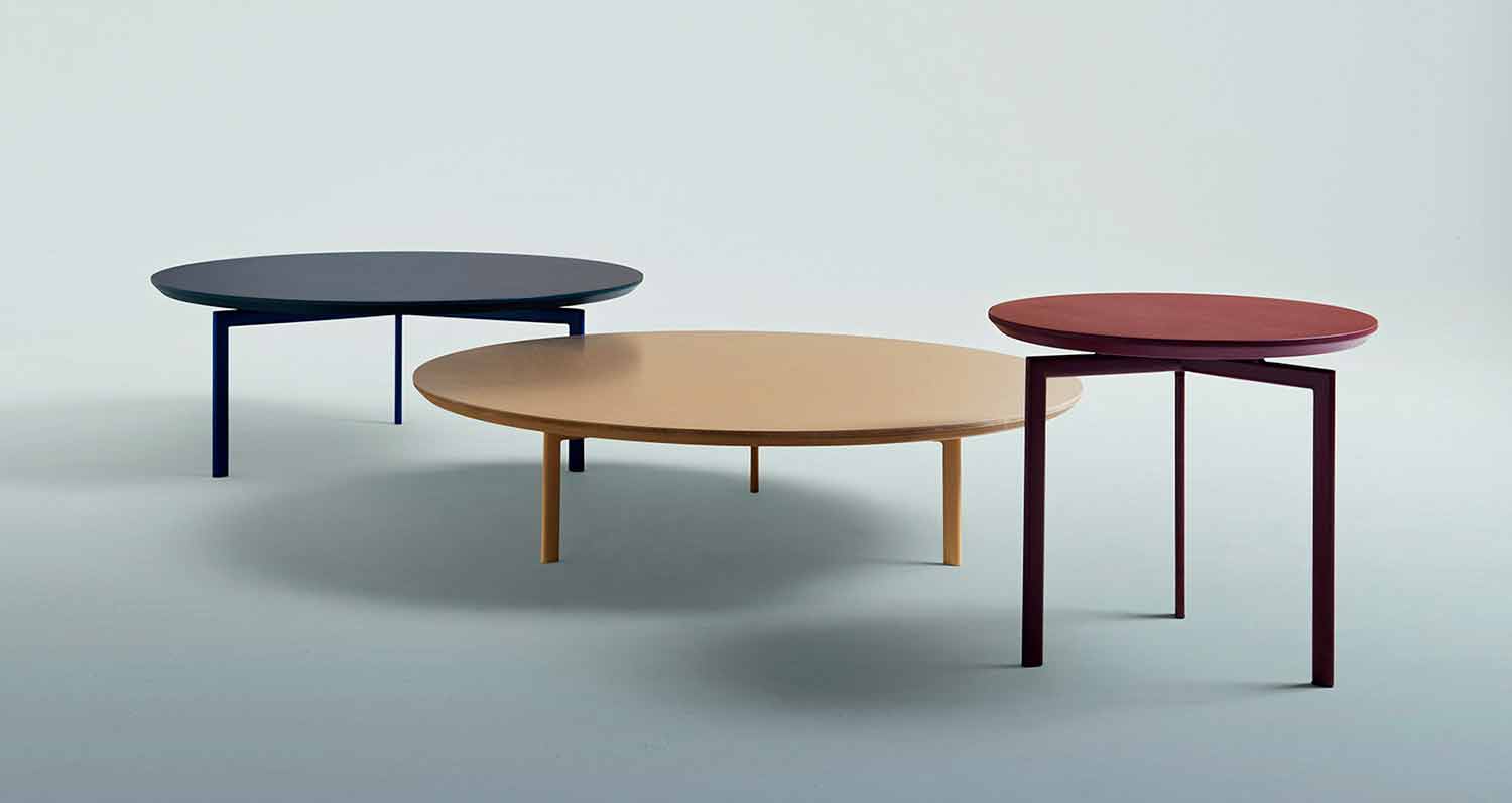 Okrągły stolik kawowy z trzema stalowymi nogami i kolorowym lakierowanym blatem MDF o nowoczesnym designie wykonanym we Włoszech.
