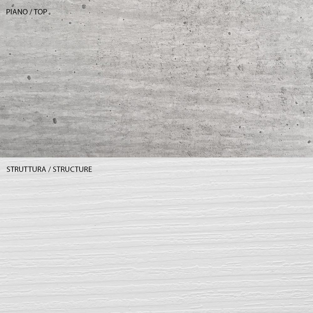 - Struktura z białym modrzewiem o otwartych porach, góra i komora na pojemniki z wykończeniem betonowym