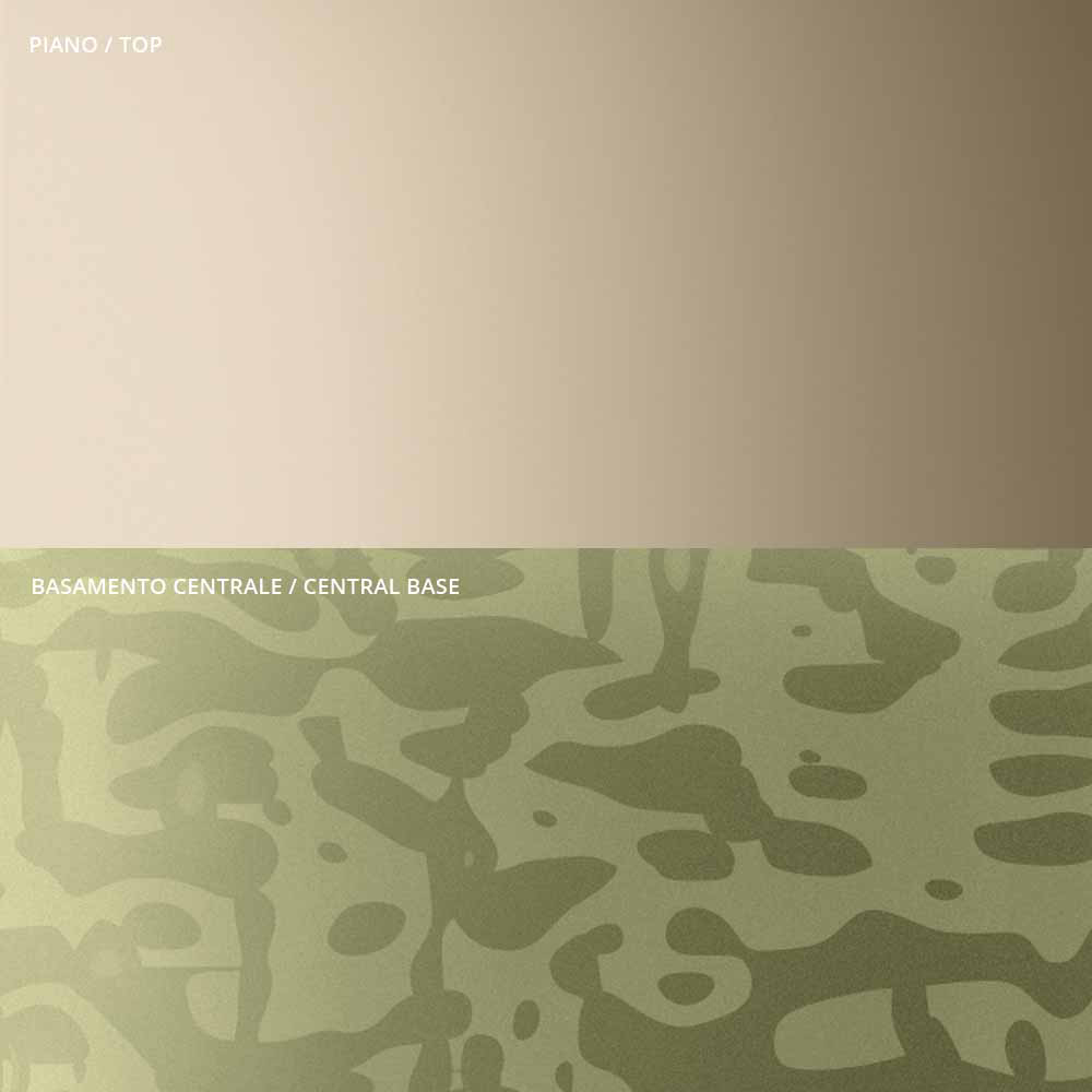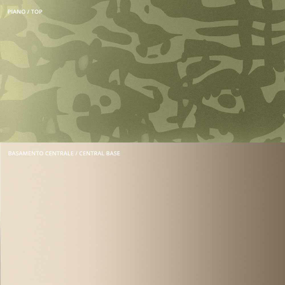 - metalowy blat w kolorze szampańskim i podstawa ze szkła stapianego w kolorze oliwkowym