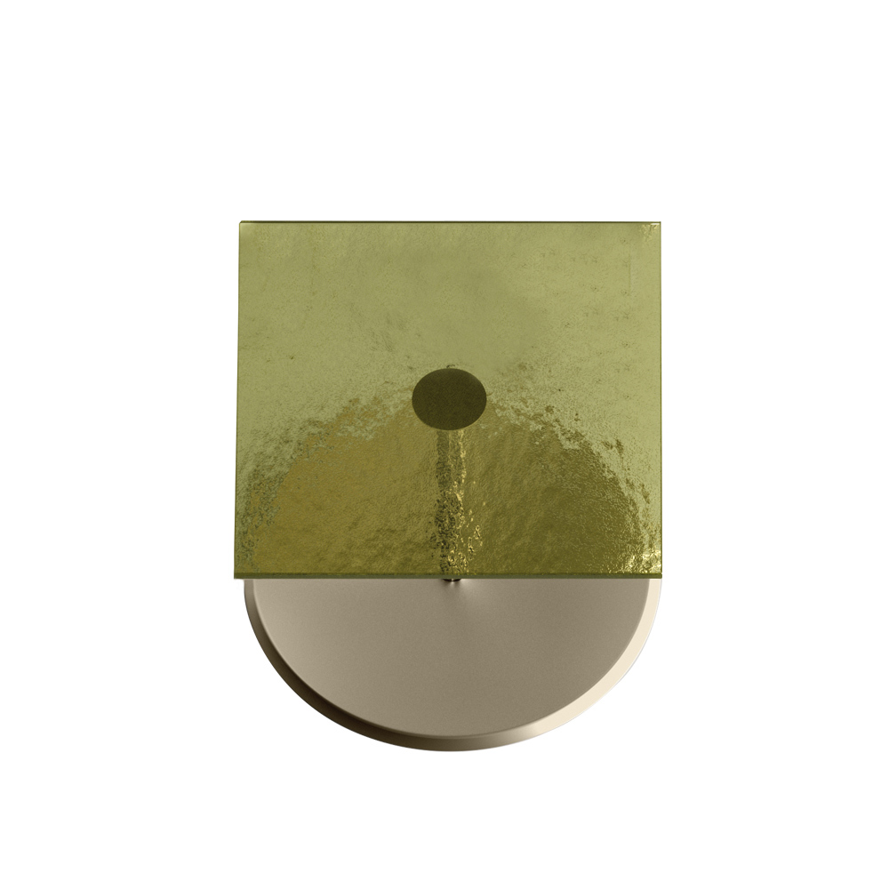 - jasnozielony top ze szkła topionego i metalowa podstawa w kolorze szampana