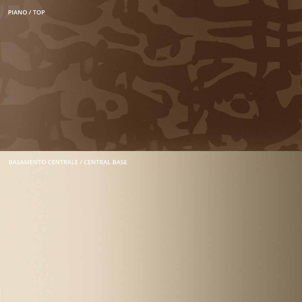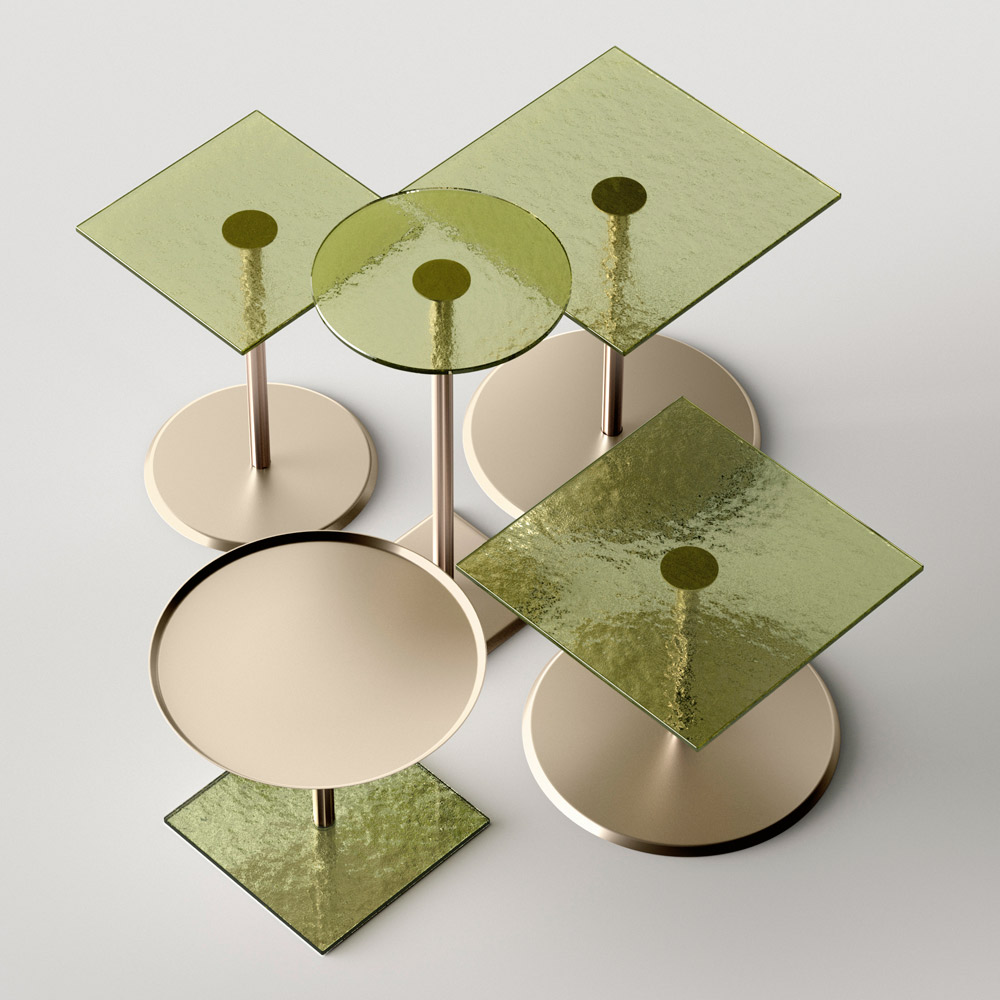 oryginalnością i elegancją kształtów blatu i podstawy, które podkreślają detal centralnej metalowej nóżki, starannie toczonej grubości i wykończonej na powierzchni. Stolik kawowy, pojedynczo lub w grupie, dostosuje się do wyposażenia każdego pomieszczenia w domu i nabierze