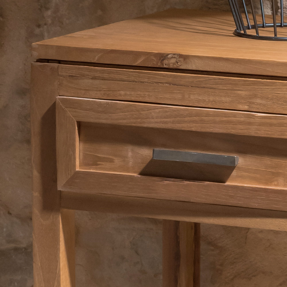 Ten solidny stolik kawowy z drewna tekowego to kompaktowy i wszechstronny mebel, idealny jako stolik boczny, szafka boczna lub stolik nocny. Kunszt wykonania i naturalne usłojenie drewna nadają mu autentyczny i ponadczasowy wygląd, idealny do każdego pomieszczenia w domu.